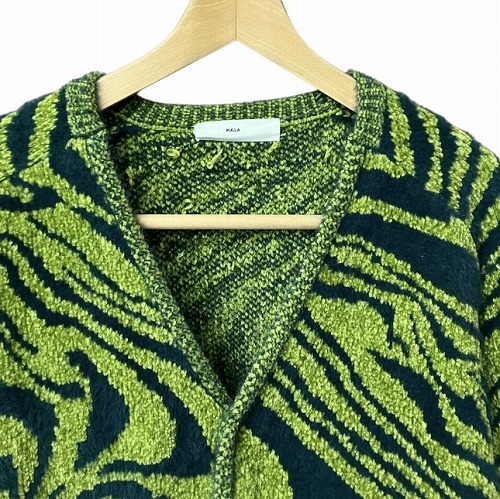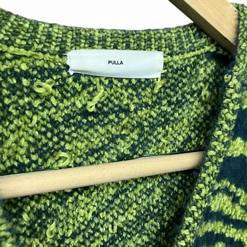 トーガ プルラ TOGA PULLA 22AW モールニット ジャガード カーディガン 総柄 緑 グリーン 38 M位 TP22-X0207 レディース