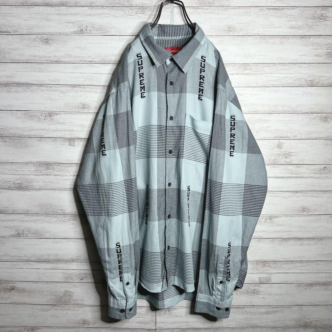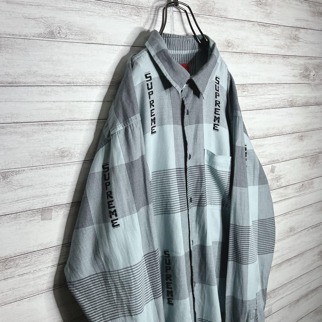 【入手困難!!】シュプリーム 刺繍 長袖シャツ チェックシャツ ゆるだぼ