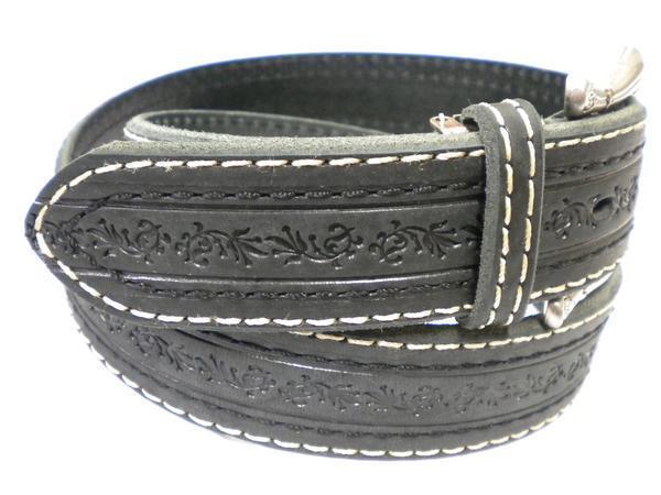 ウエスタン調バックル 0番ステッチ糸 型押しレザーベルト 新品