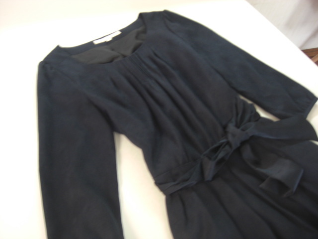 美品ナチュラルビューティー 上品ワンピース紺36
