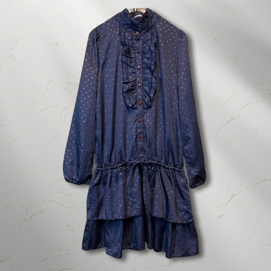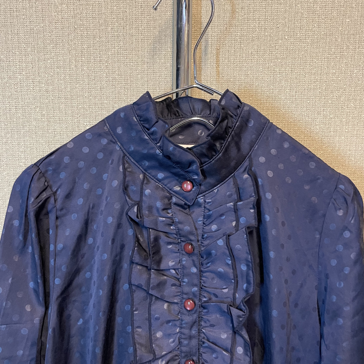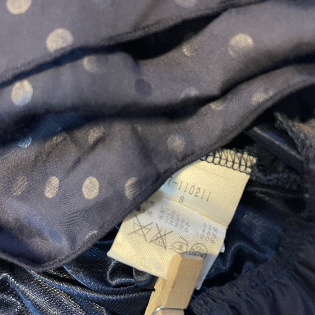 NATURAL BEAUTY ナチュラルビューティー ネイビー同色ボット フリル ティアード ハイネックワンピース Sサイズ