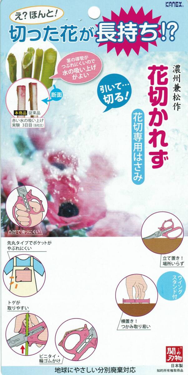 関の刃物 花切用はさみ 花切かれず ピンク 濃州兼松 ハサミ ステンレス 茎の導管がつぶれにくい 水の吸い上げが良い 切花が長持ち 鋏