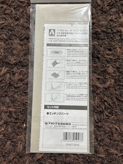 | 商品説明 | アクセスありがとうございます。 アオシマ 1/700 ウォーターライン 重雷重艦大井/北上専用 エッシングセット 未使用 です。 状態は 未使用 です。袋に やや傷み があります。 送料 | 定型外発送可能で 180円 です。 ゆうパック(着払OK) [福岡県内] 810 円 [ 九州 ]870円 (佐賀、大分、熊本、長崎、宮崎、鹿児島) [沖縄]1030円 [ 中国 ] 870円 (鳥取、岡山、島根、広島、山口) [ 四国 ] 970円 (香川、徳島、愛媛、高知) [ 近畿 ] 970円 (滋賀、京都、大阪、兵庫、奈良、和歌山) [ 東海] 1100円 (静岡、愛知、岐阜、三重) [ 北陸 ] 1100円 (富山、石川、福井) [ 信越 ] 1300円 (新潟、長野) [ 関東 ] 1300円 (茨城、栃木、群馬、埼玉、千葉、東京、山梨、神奈川) [ 東北 ] 1540円 (青森、岩手、秋田、山形、宮城、福島) [ 北海道]1540円 (北海道 全域) 同時梱包(3辺170cm以内)は可能な限り対応いたします。 指定便がある場合、同時梱包時は 再度 送料を連絡いたします。 送付方法 |