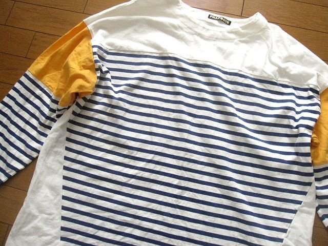 FRAPBOIS フラボア バスクカラー カットソー ボーダー ボートネック 白青。 ユーズドになります、着用に差し支える大きなダメージはございません。