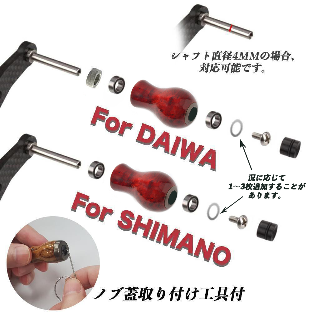 YU395B 木製ノブ ウッドノブ アフリカ紫檀「瘤杢部」ウッドノブ パワーリールハンドルノブ ベイトリールスピニングリール可