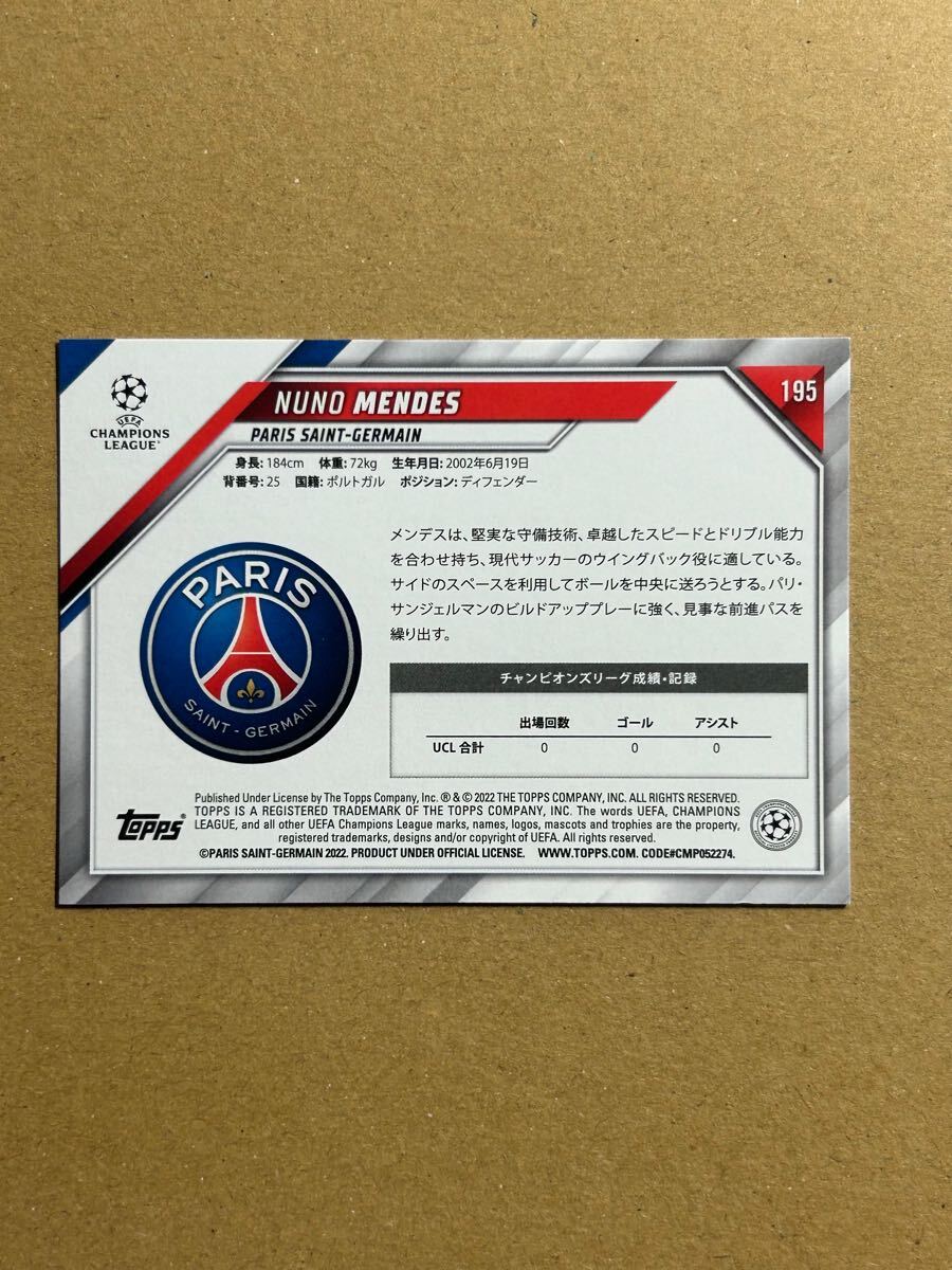 【RC】ヌーノ メンデス Nuno Mendes Topps JAPAN UEFA パリ・サンジェルマン