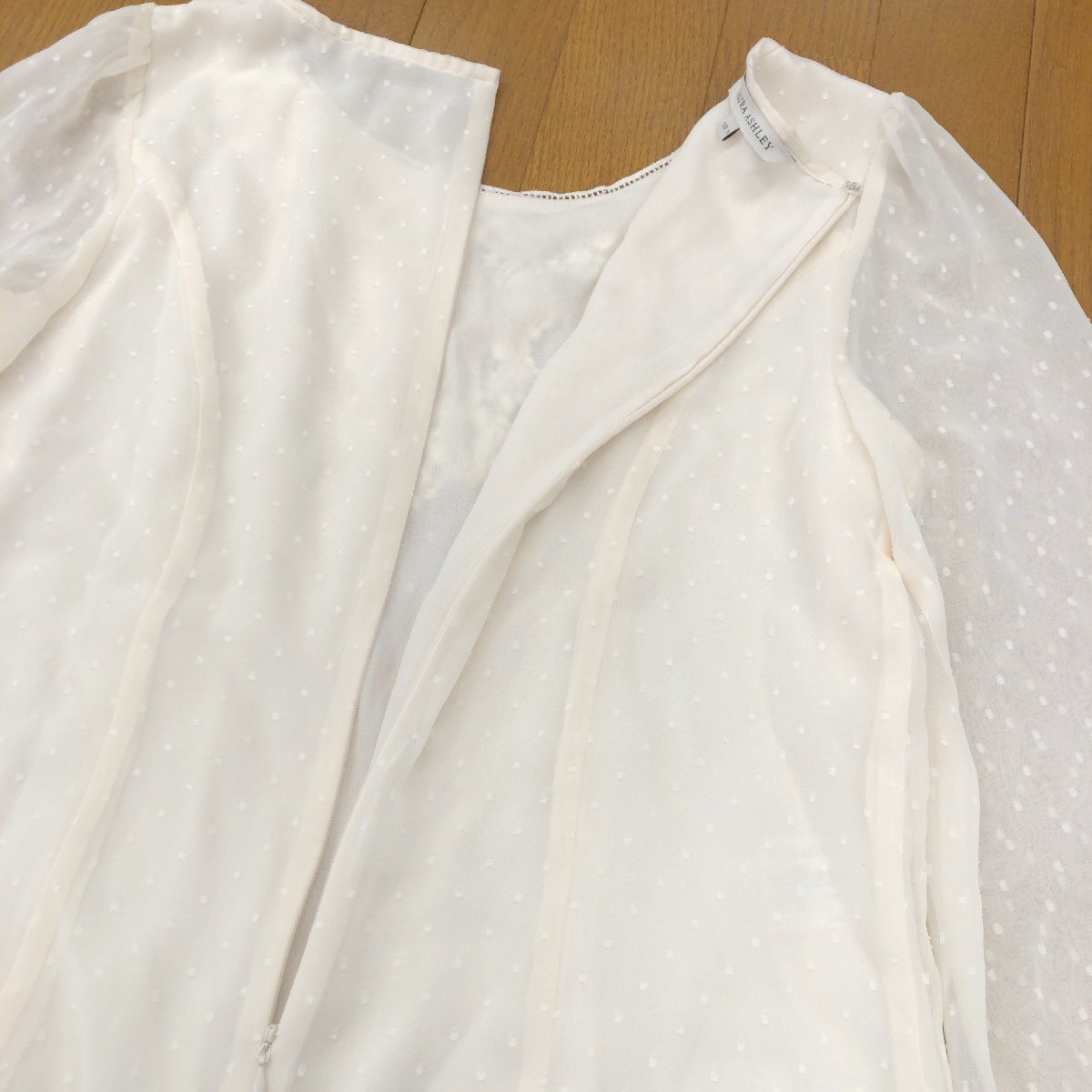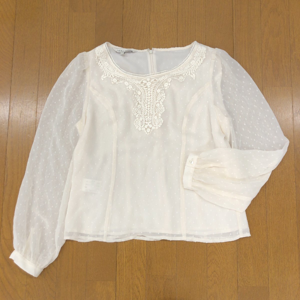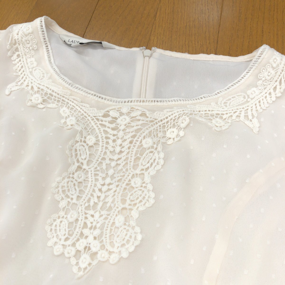 美品 LAURA ASHLEY ローラアシュレイ シアースリーブ レース レイヤード プルオーバー シフォン ブラウス 11(L) シャツ カットソー 婦人