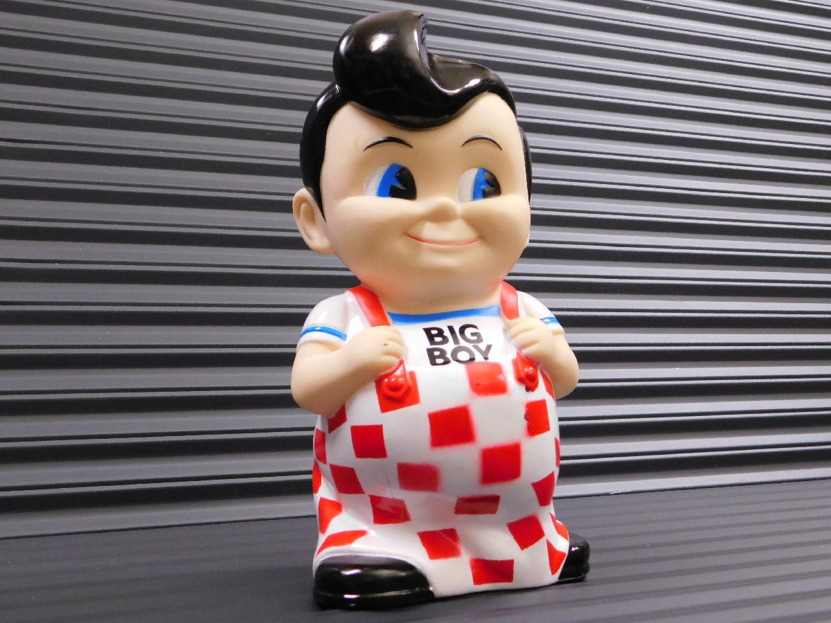 ハンバーグ&ステーキレストランでお馴染み、「Big Boy」のマスコットキャラクター「ボビーくん」の、ソフビ製コインバンク。