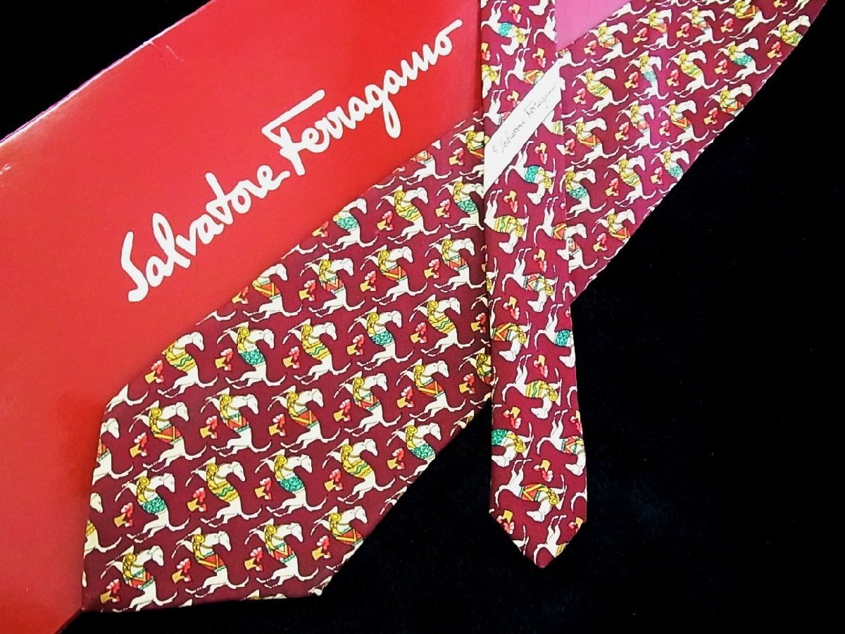 ★今週の特売★6307★高級ブランド【キャラ柄】★フェラガモ【犬 いぬ 動物 柄】ネクタイ★