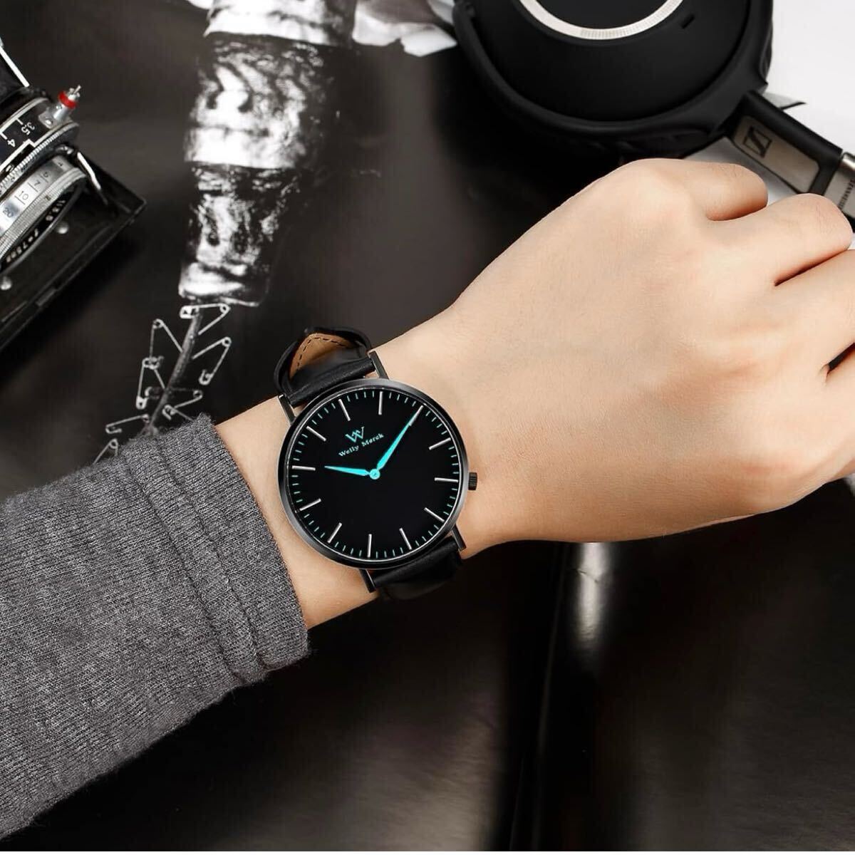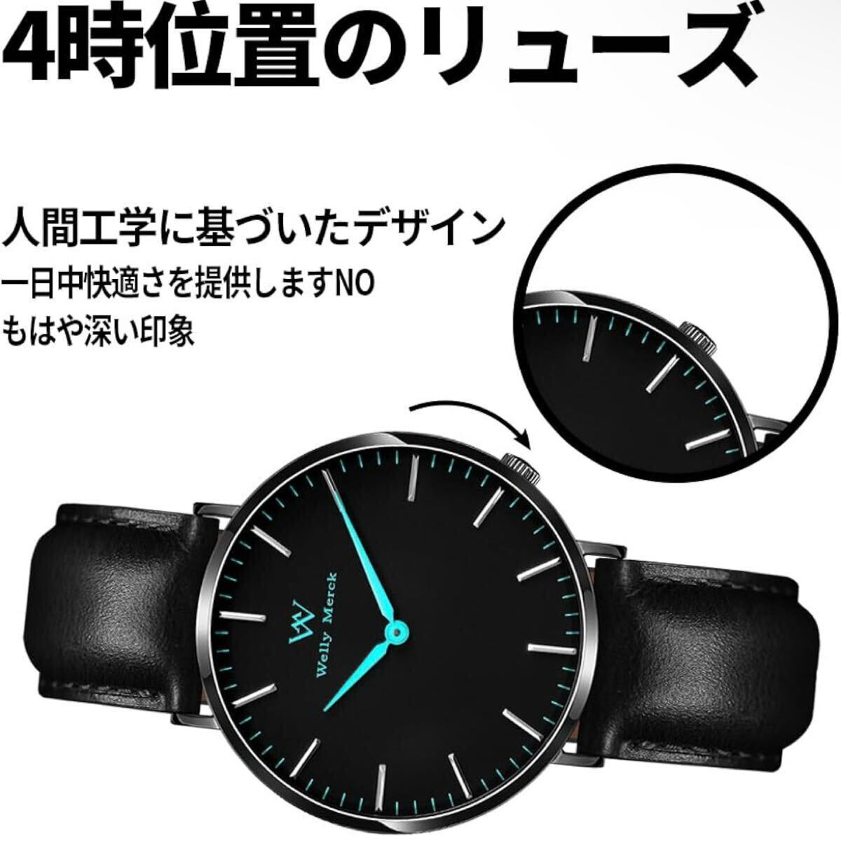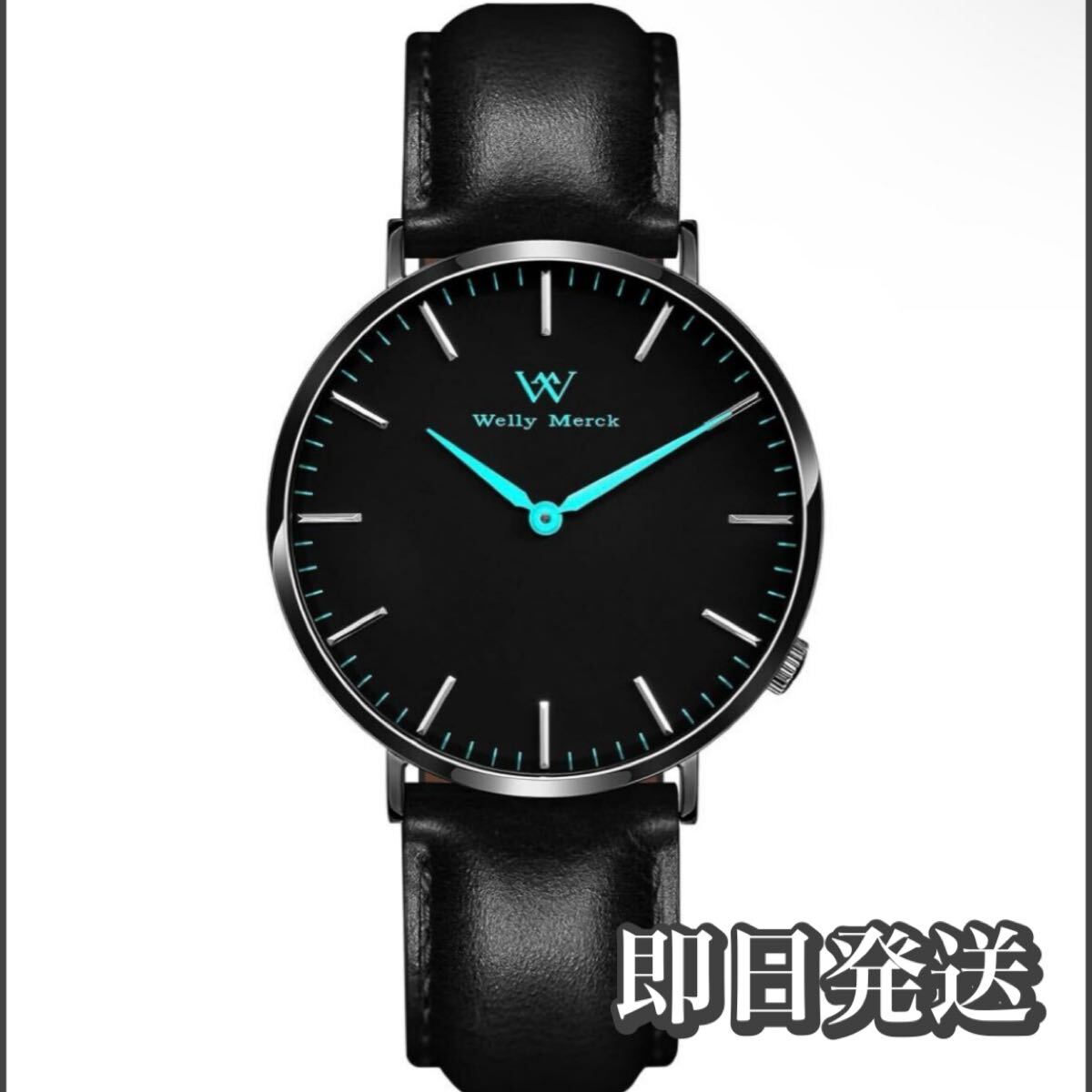 WM Welly Merck 時計 メンズ スイスブランド ビジネス サファイアガラス スイスクォーツ 42MM黒文字盤 20MM ブラックレザーベルト 日常生活防水