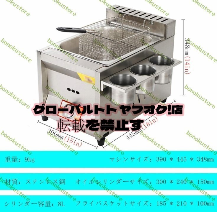 【商品詳細】★状態:新品未使用材質:高品質のステンレス鋼製で、耐熱性、耐食性、長寿命です。大容量:8L大容量、一度により多くの食品を揚げ、より多くの人々のニーズに簡単に応えます。高速加熱:金属バーナーは急速に加熱され、均一に加熱され、省エネとガス節約を実現し