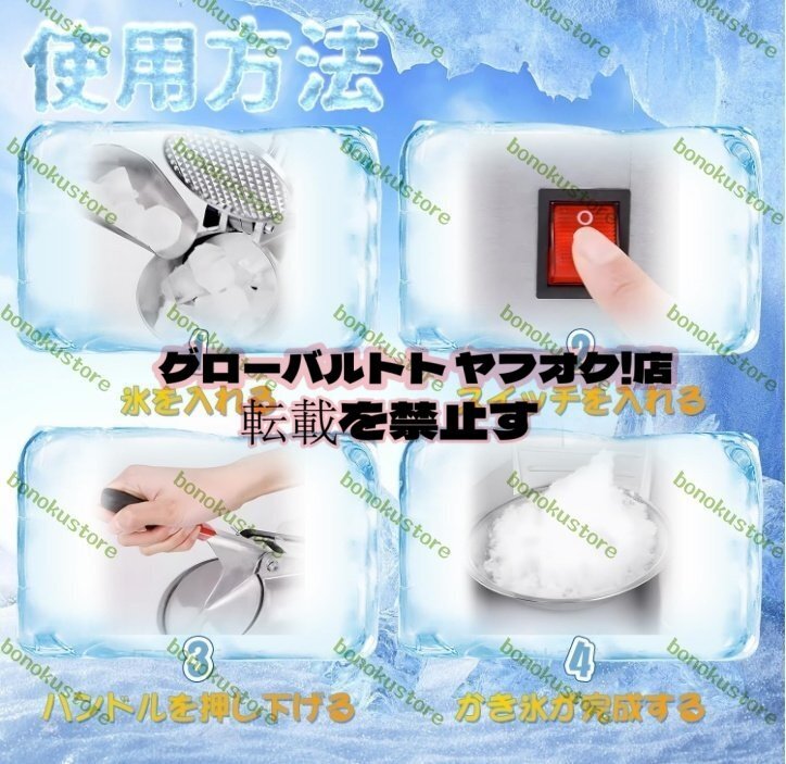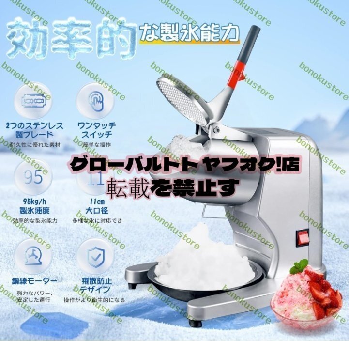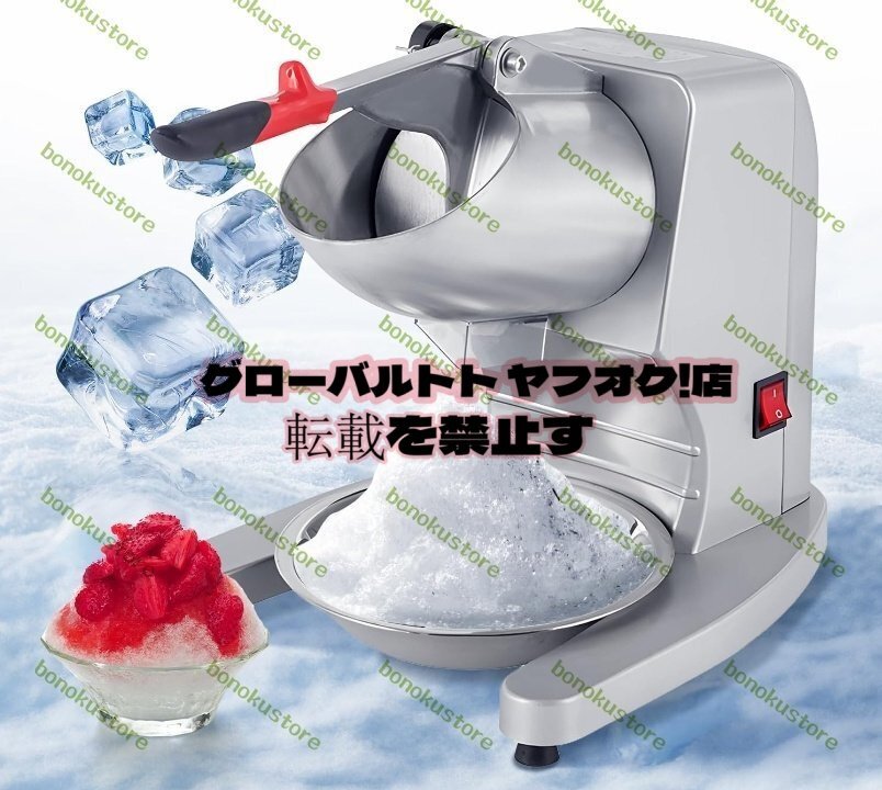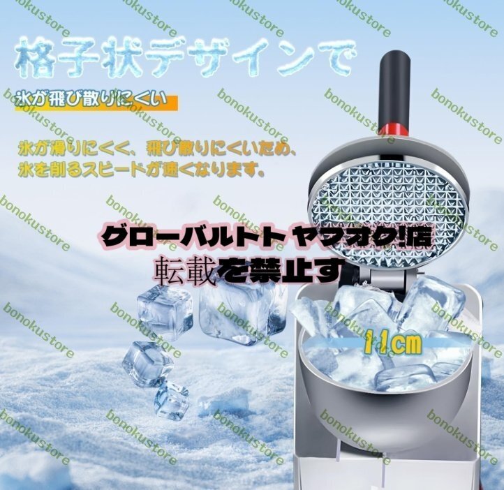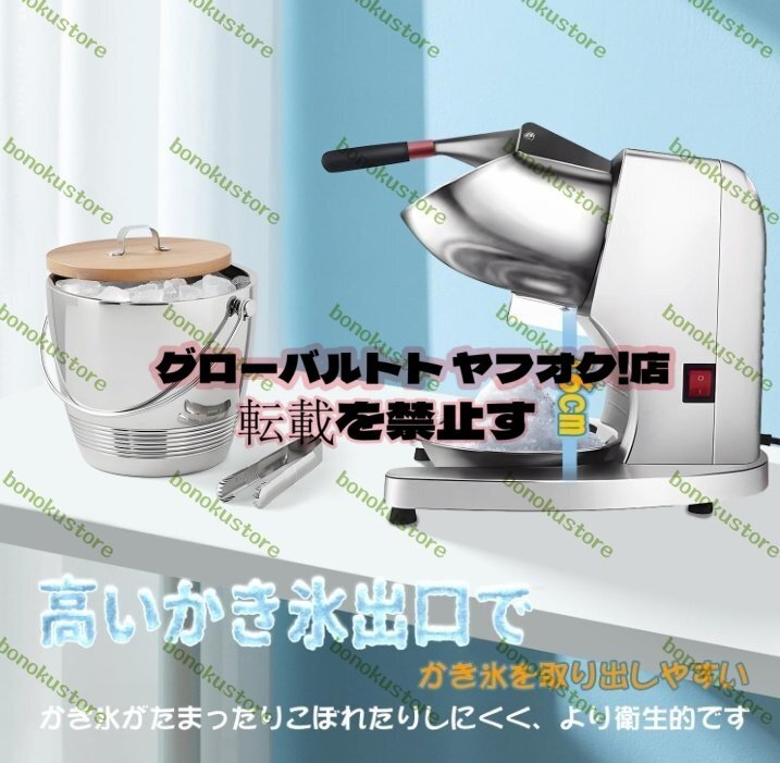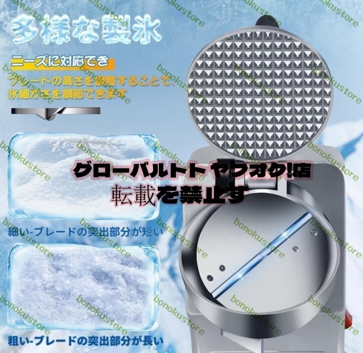 【業務用電動かき氷機】本格的な電動かき氷器、電動による1時間約95kgかき氷がつくれます(1分で約1.5㎏)。喫茶店、日本料理店、海の家、バー、お祭りなどのイベントでも大活躍!【氷のきめ細かさ調整可能】ブレードの高さを調整することで、氷細かさを調節できます。一台のか