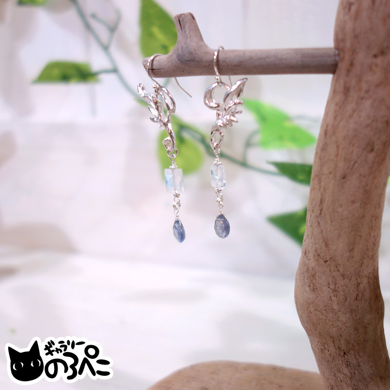 ブルームーンストーン×アイオライトの羽ピアスです。