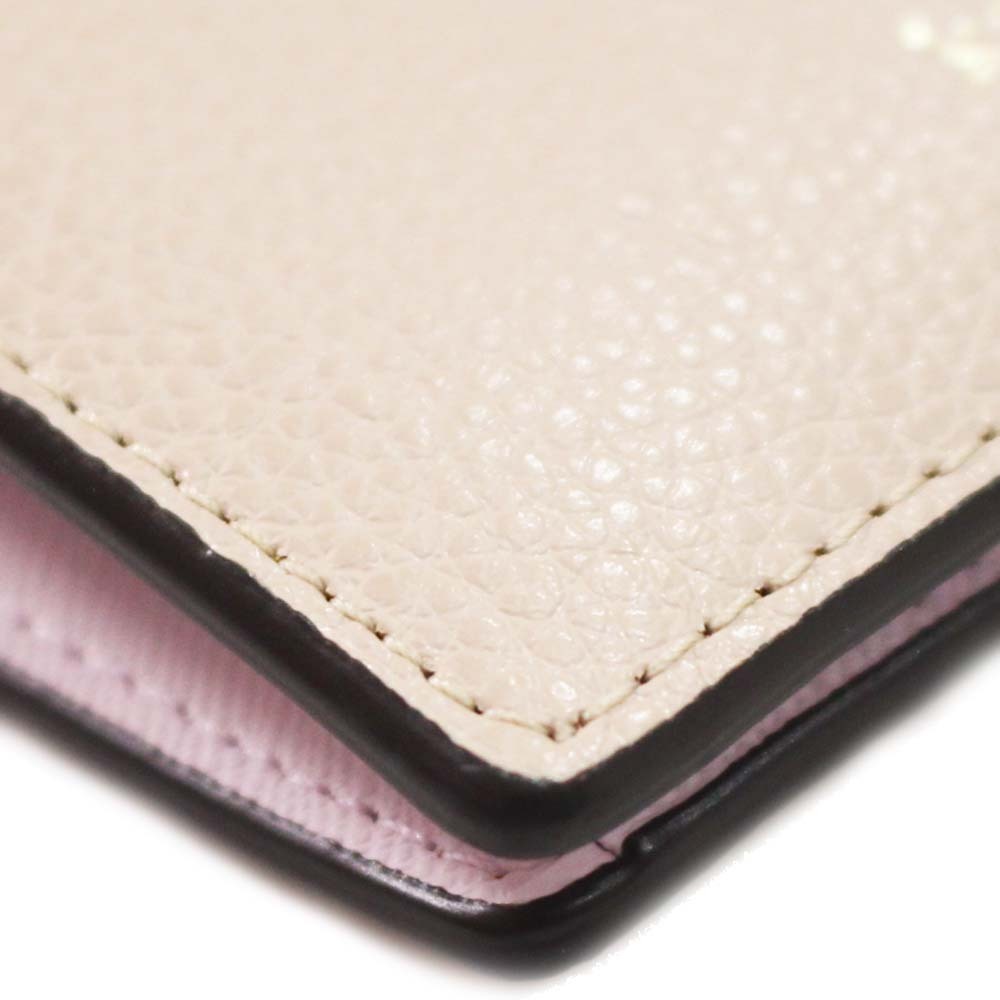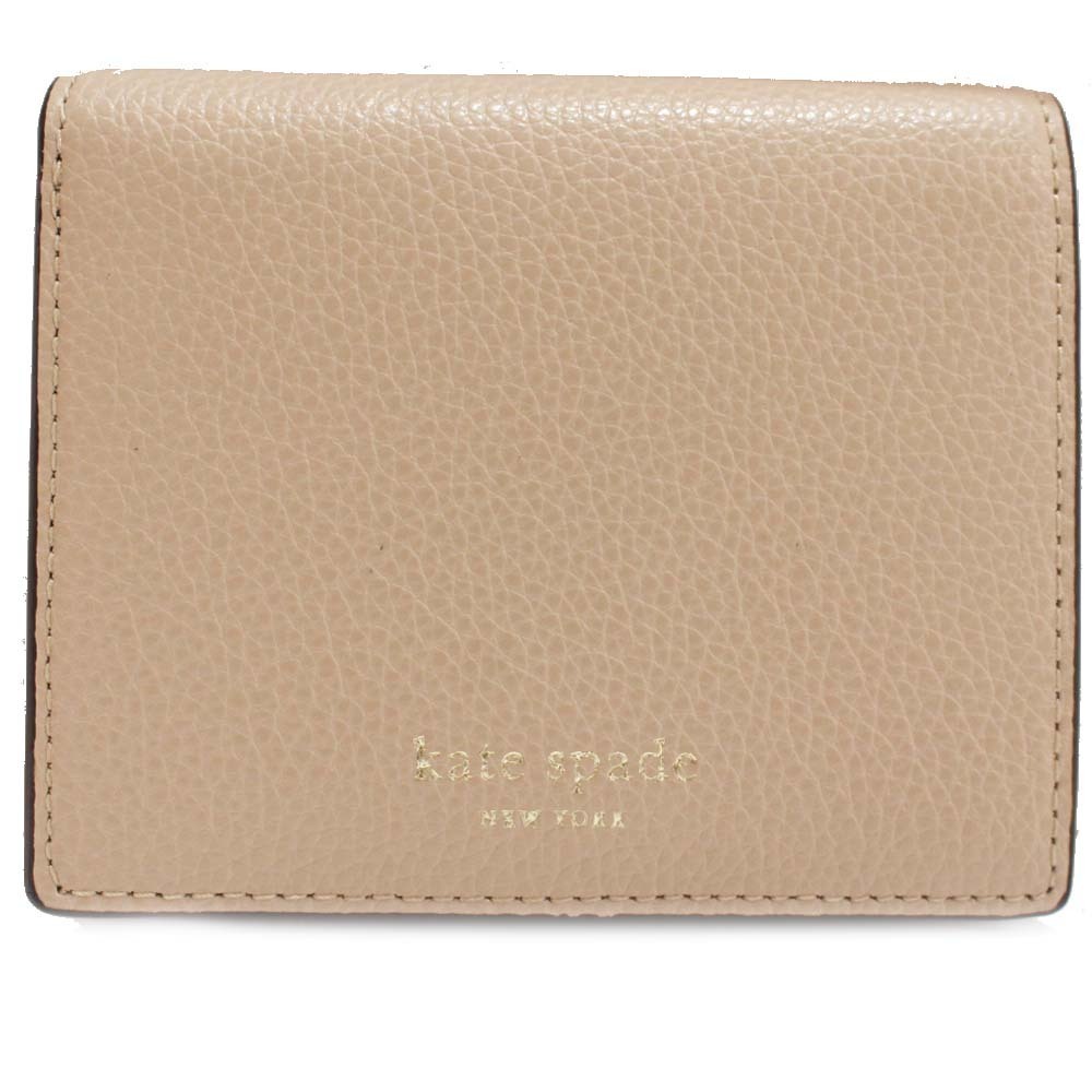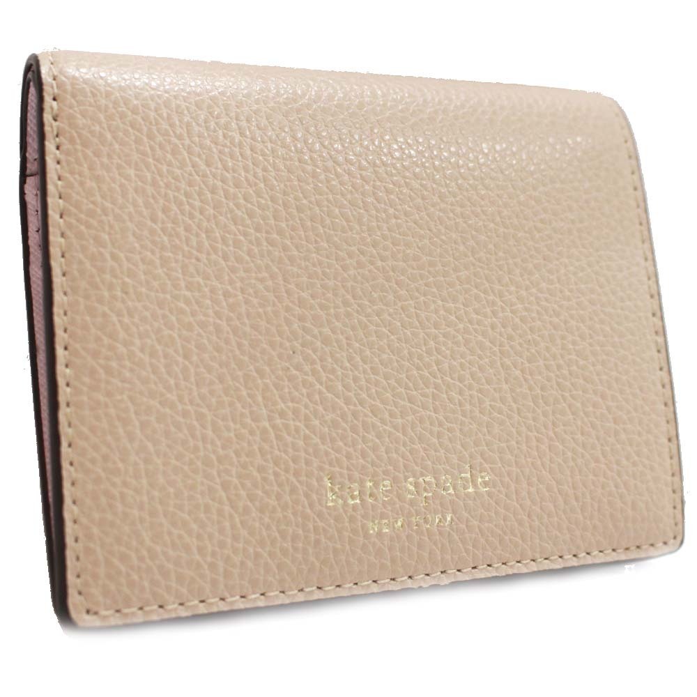 ケイトスペード ロゴ 二つ折り財布 レディース 型押しレザー ピンクベージュ 中古 Kate Spade