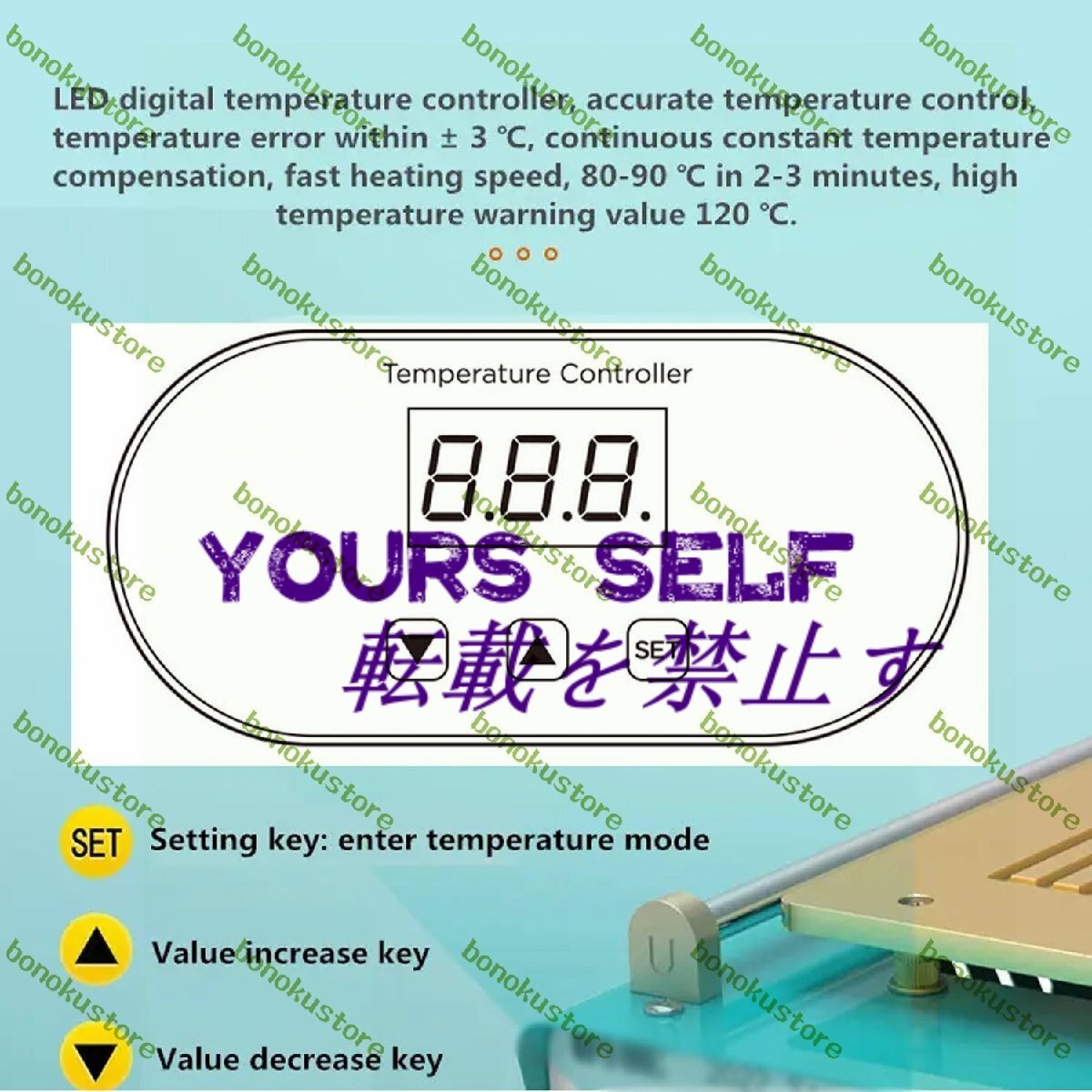 適用範囲: 加熱テーブルは、携帯電話画面、LED ディスプレイ、コンポーネント作業、SMD リエンジニアリング作業、PCB 除去、溶接作業のセグメント化と修理に使用できます。