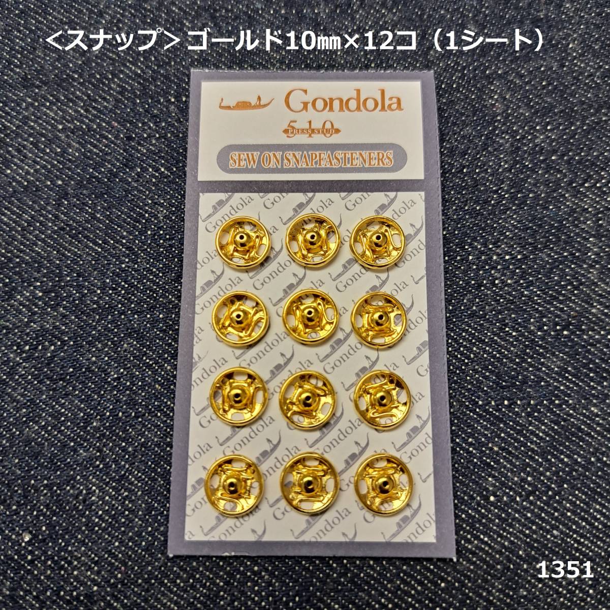 1351<スナップ>ゴールド10㎜×12コ(1シート)★Gomdola510★ゴンドラ★レア★金色