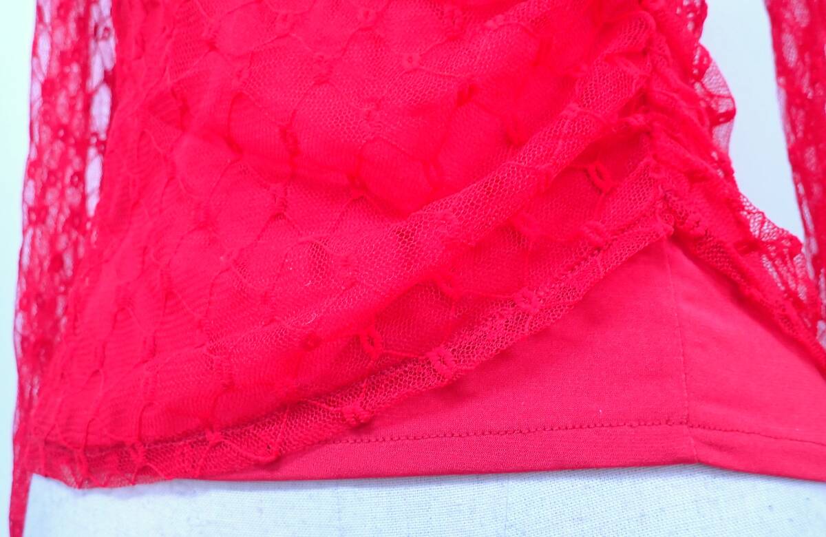 ③25D01★美品★Lサイズ★赤/レース/トップス☆社交ダンス/モダン/スタンダード/ラテン/レッスン