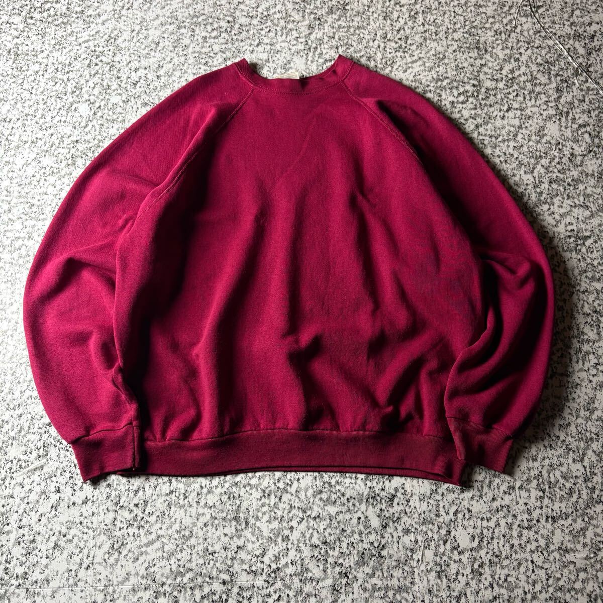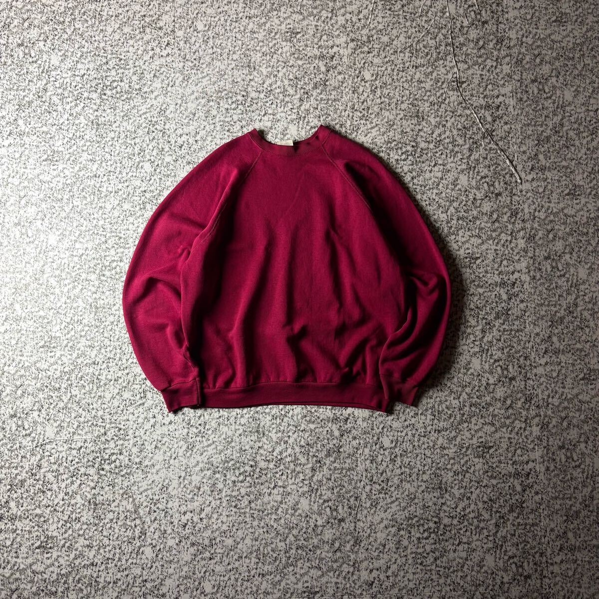 【90sUSA製】tultex 無地ノームコア ヴィンテージ ラグランスウェット マゼンタ XLサイズ 古着  トレーナー