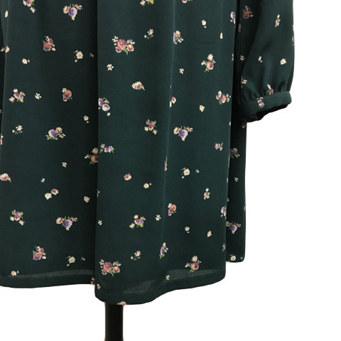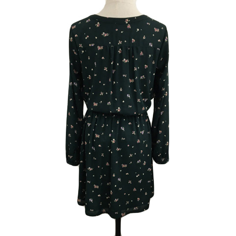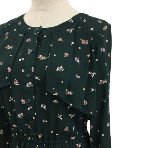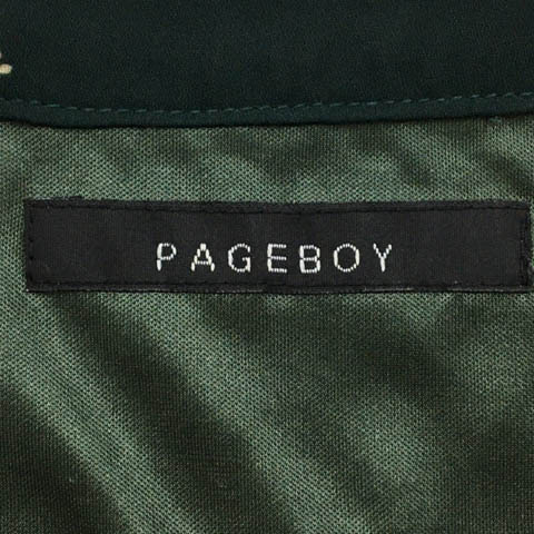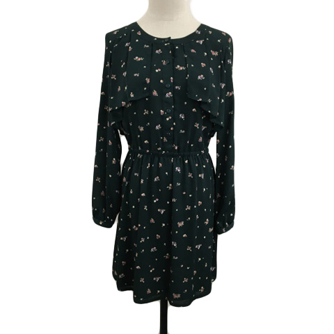 ページボーイ PAGE BOY ワンピース フレア ミニ ウエストゴム 花柄 総柄 長袖 M 緑 ピンク グリーン レディース