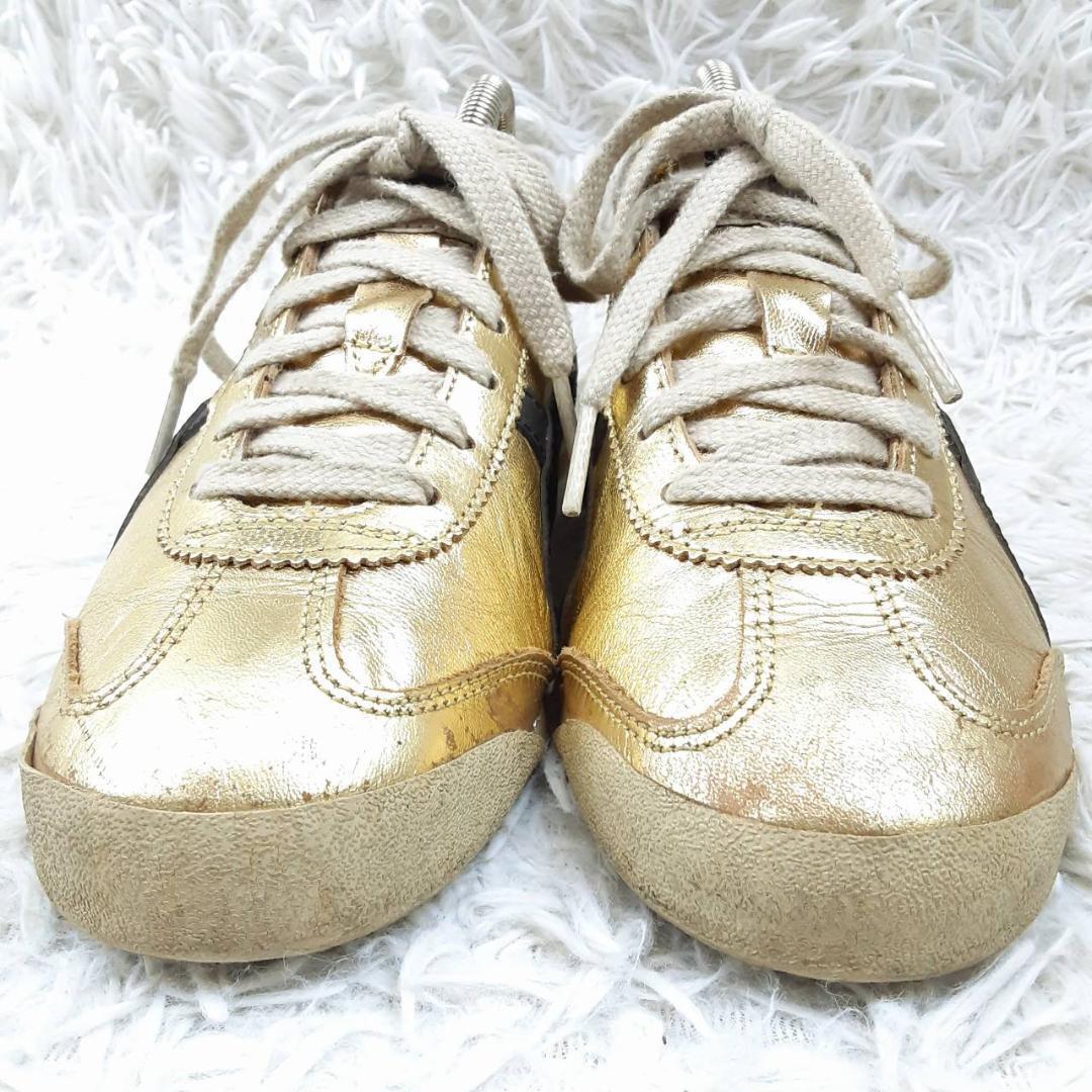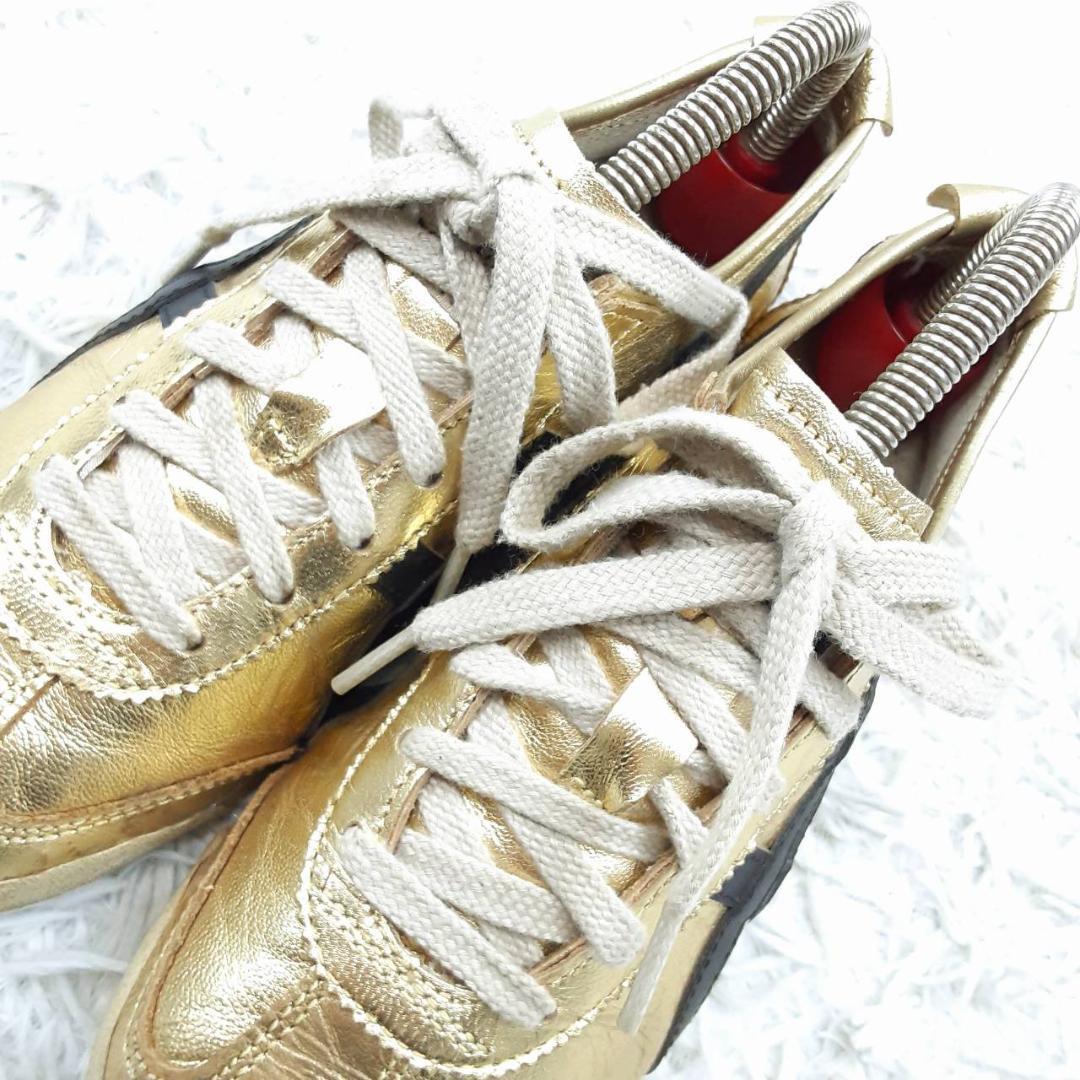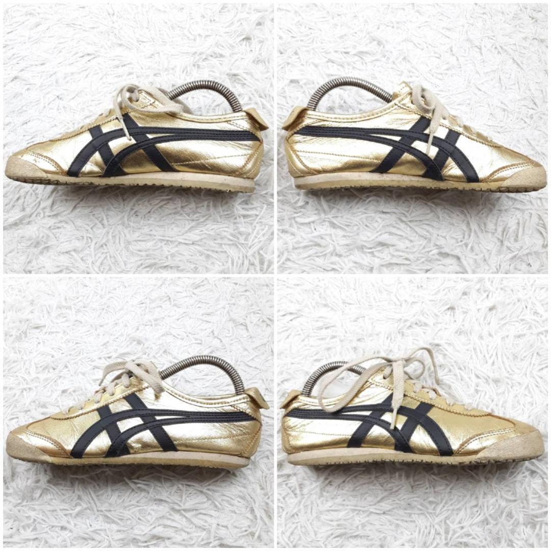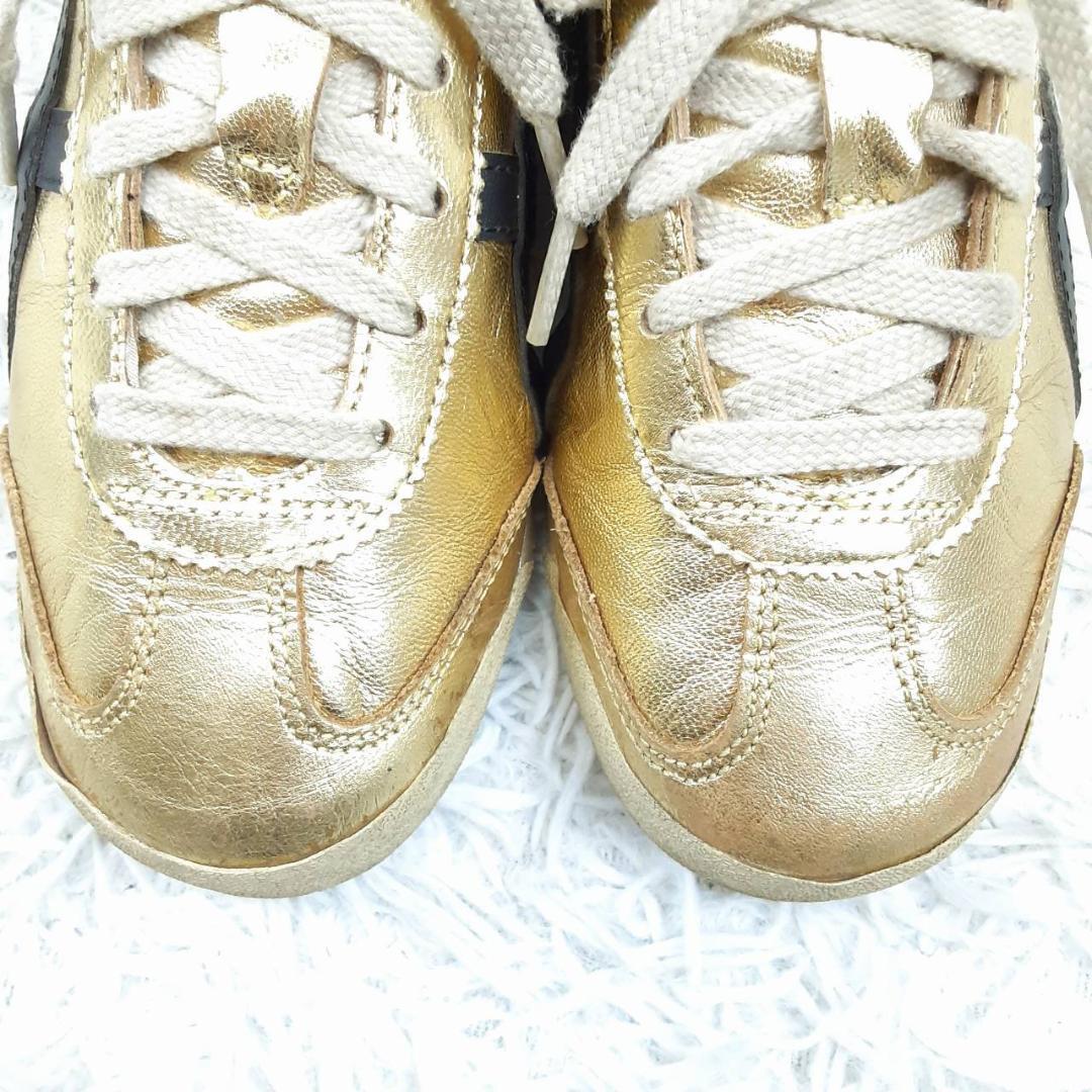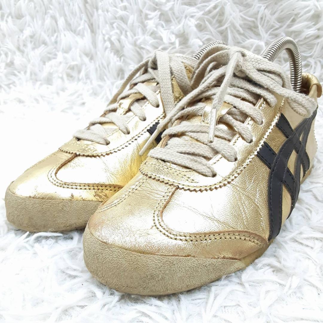 美品 22.5㎝◎Onitsuka Tiger オニツカタイガー MEXICO 66 メキシコ66 レザースニーカー ランニングシューズ ゴールド 金 ブラック 黒 希少カラー