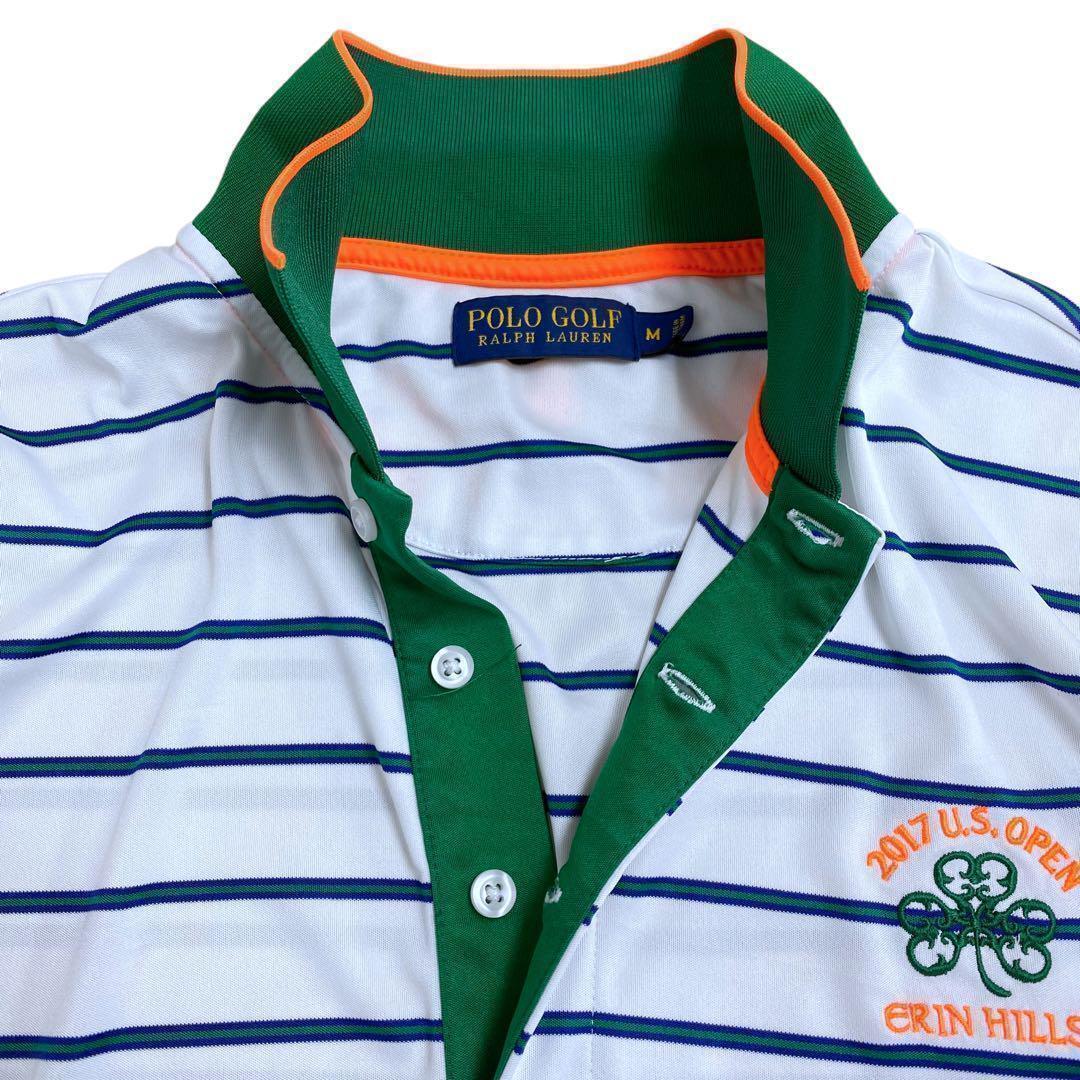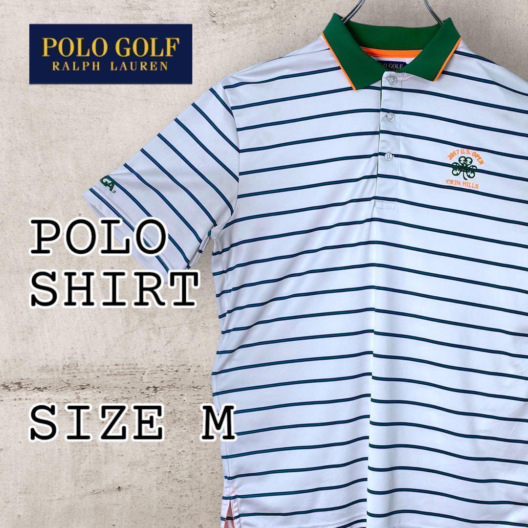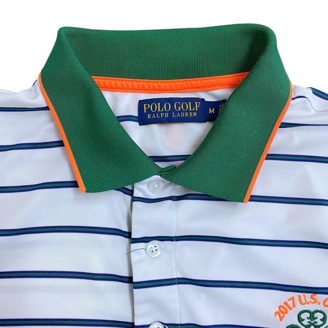 ポロゴルフ 半袖ポロシャツワークウェア ホワイト グリーンボーダー USA企画メンズMサイズ