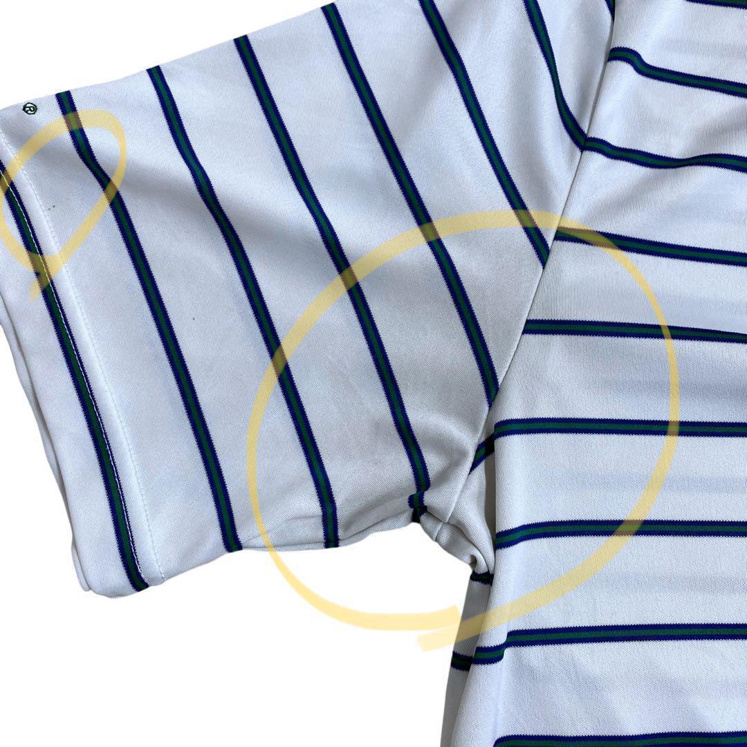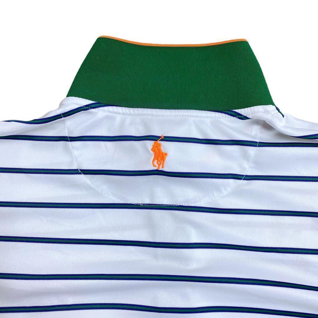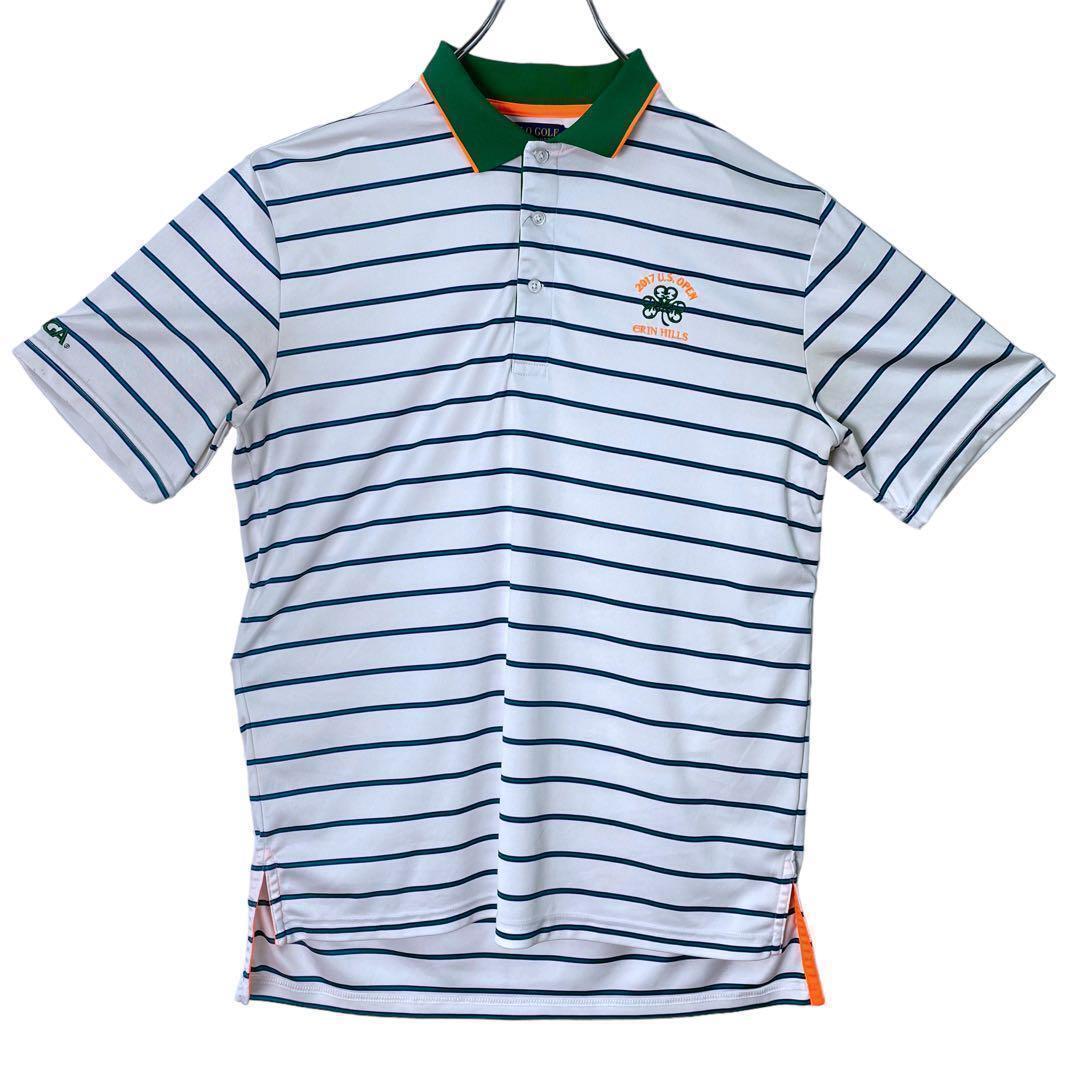 ポロゴルフ 半袖ポロシャツ ワークウェア ホワイトグリーンボーダー USA企画メンズMサイズ