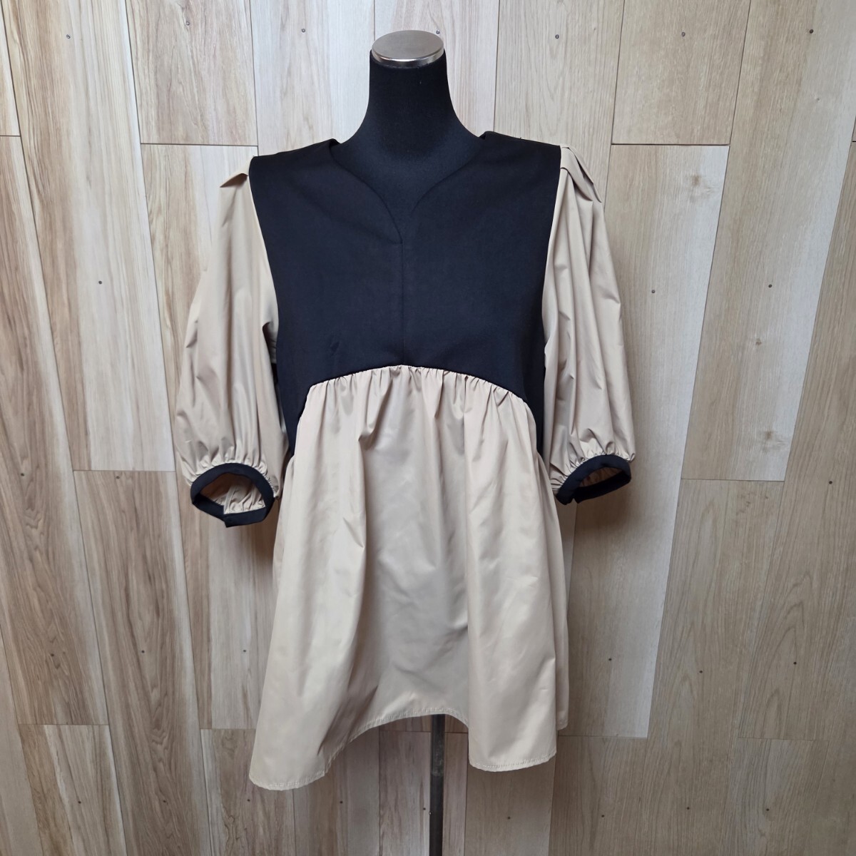 超美品 MADAM MINA マダムミーナ★異素材コンビ ハートネック バルーンスリーブ チュニックブラウス ショップチャンネル