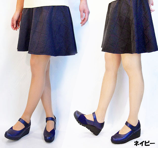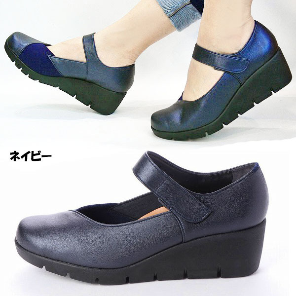 36lk 送料無料 ファーストコンタクト パンプス 靴 日本製 楽ちん 痛くない ストラップ切替デザイン 母の日 ウェッジパンプス