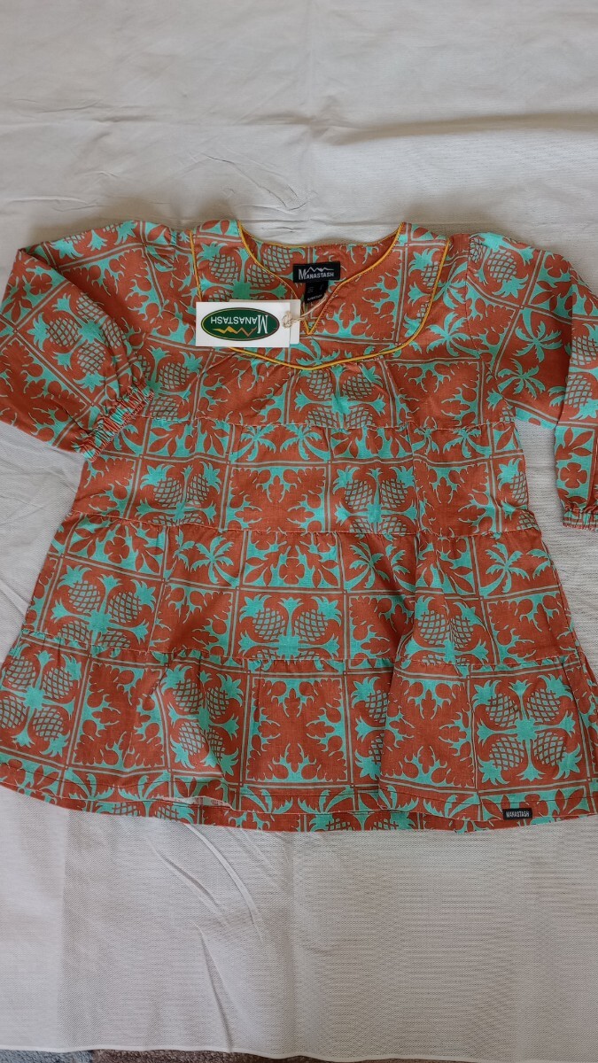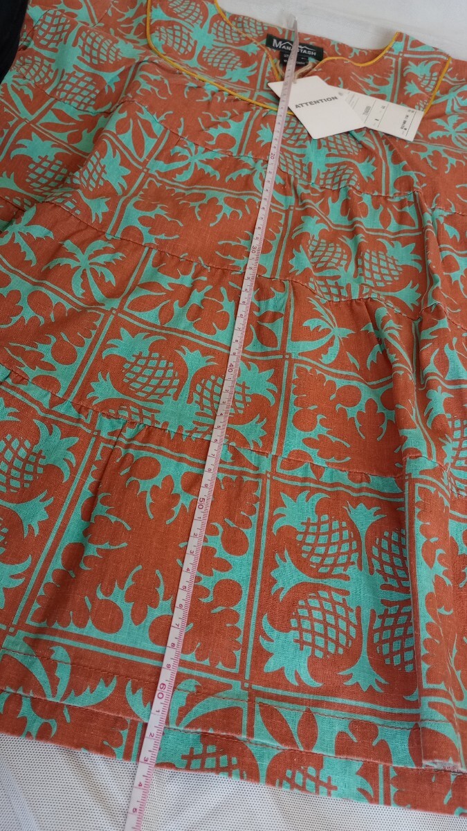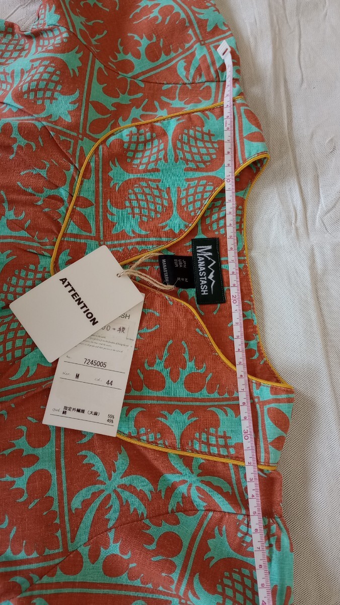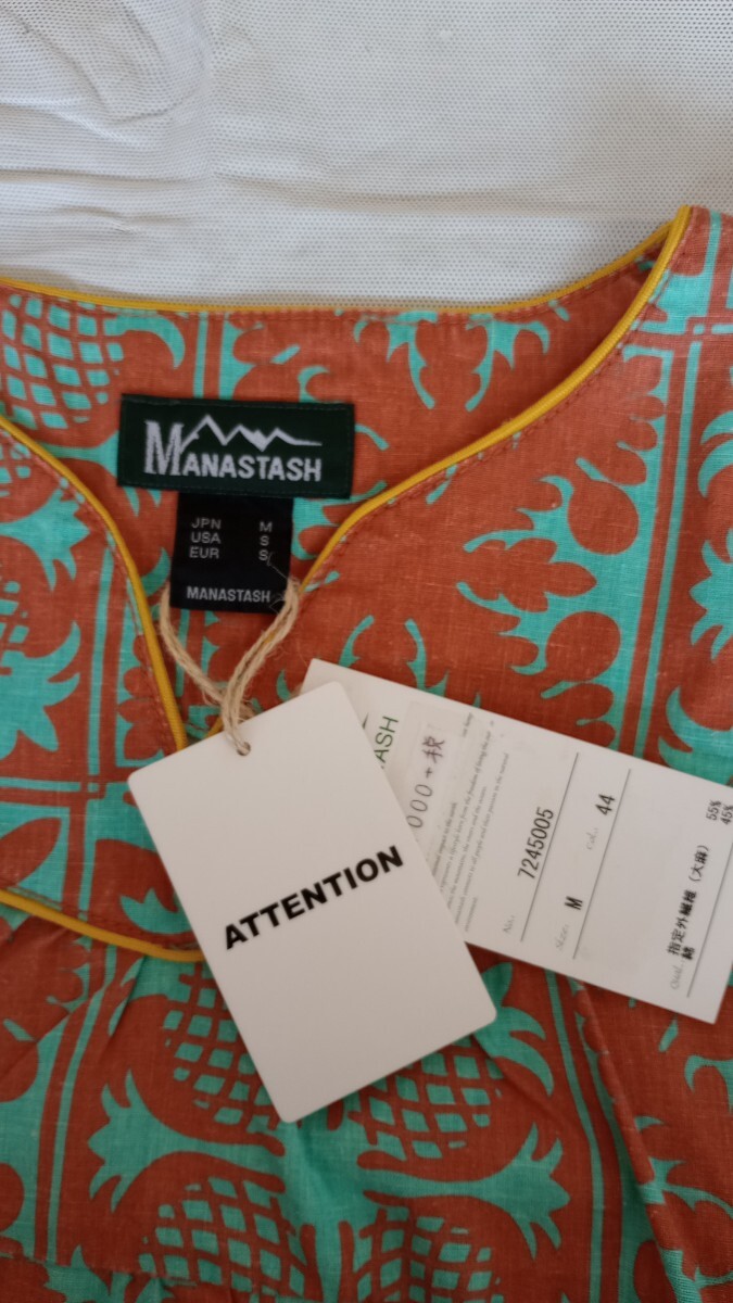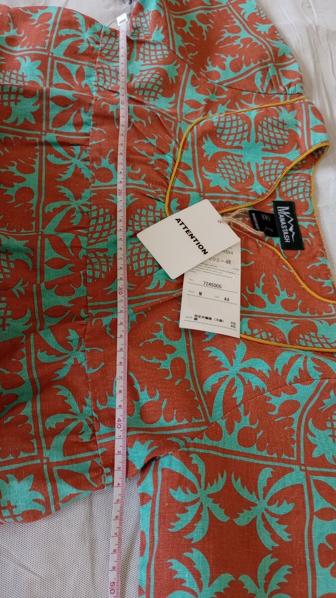 新品未使用 処分マナスタッシュリネンシャツ ハワイアン アロハ チュニック ブラウス 体型カバー M