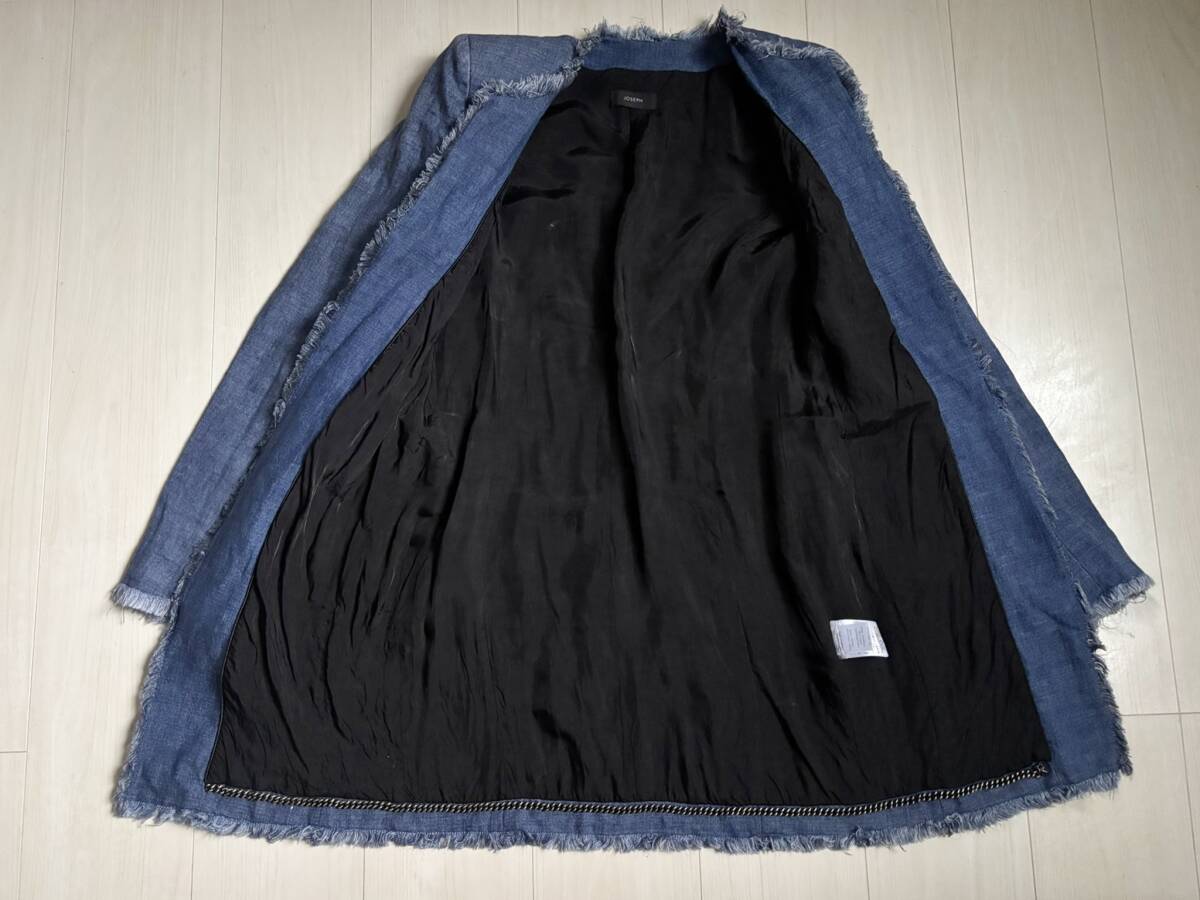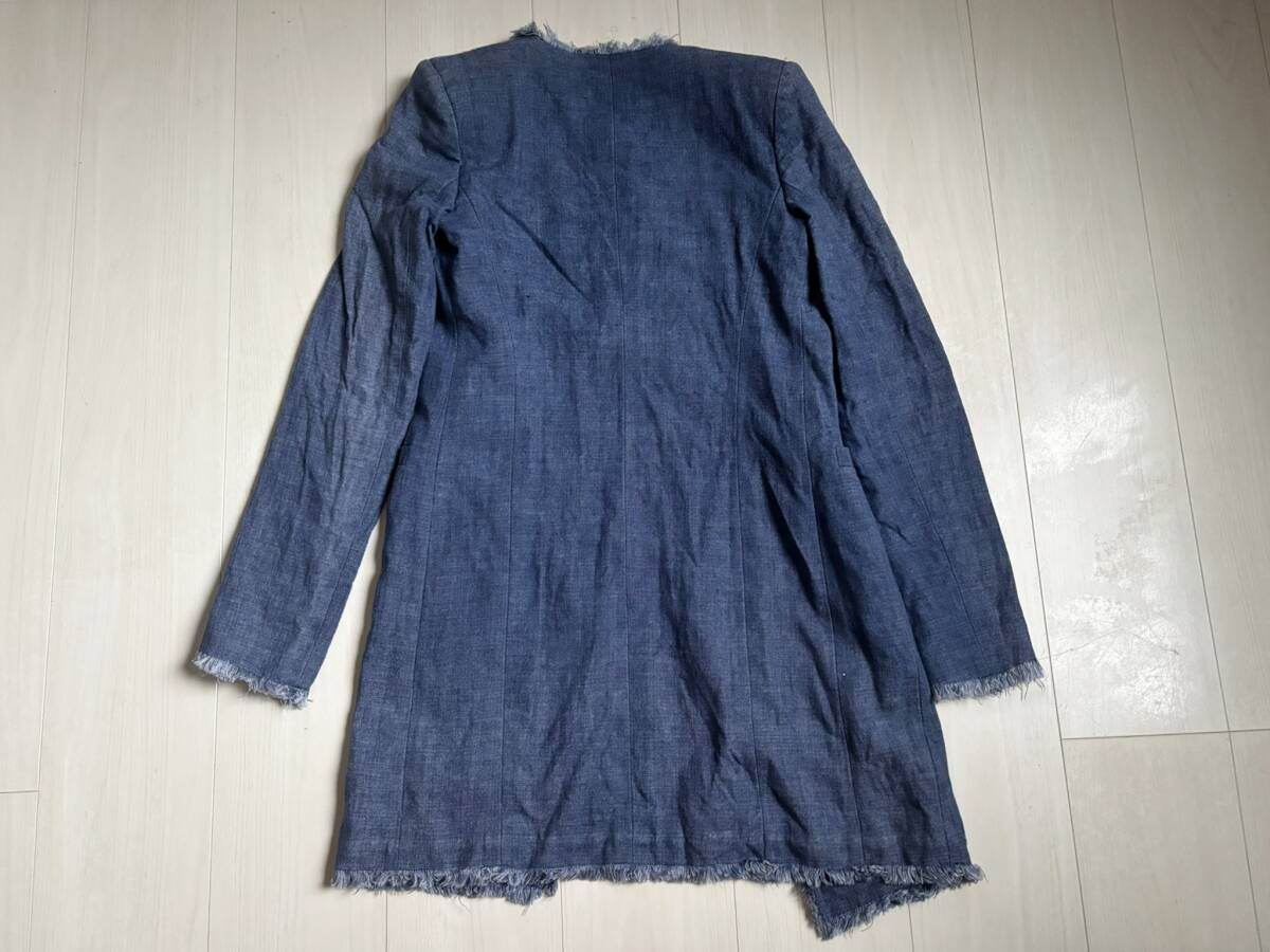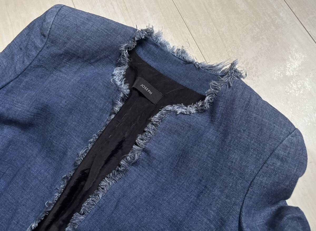 JOSEPH ジョセフ ジャケット リネン ロング ノーカラー チェーン カットオフ インディゴ 36 青 ブルー ボタンレス Linen Jacket ▼0669 になります。
