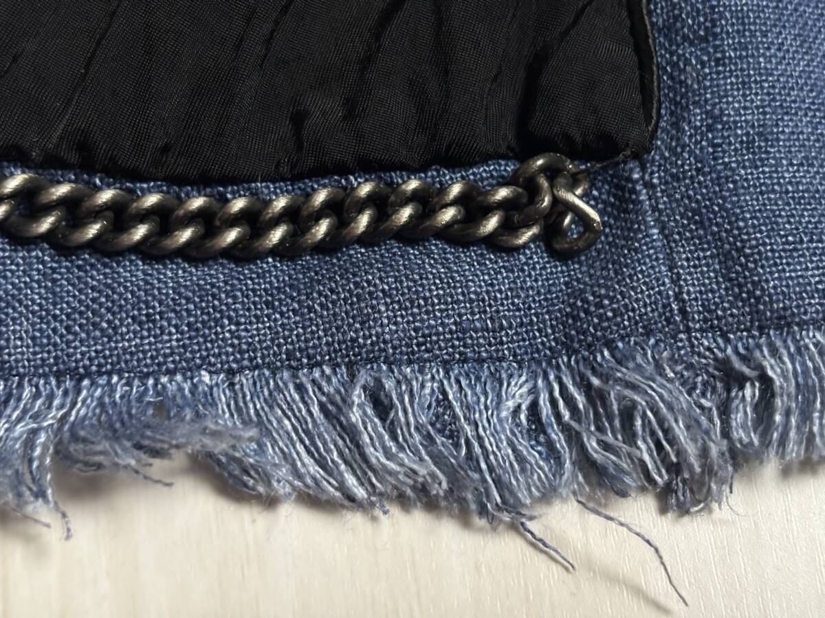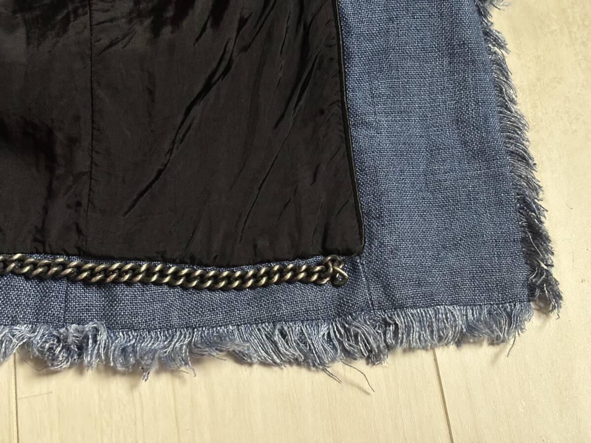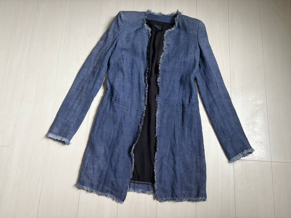 JOSEPH ジョセフ ジャケット リネン ロング ノーカラー チェーン カットオフ インディゴ 36 青 ブルー ボタンレス Linen Jacket ▼0669 になります。