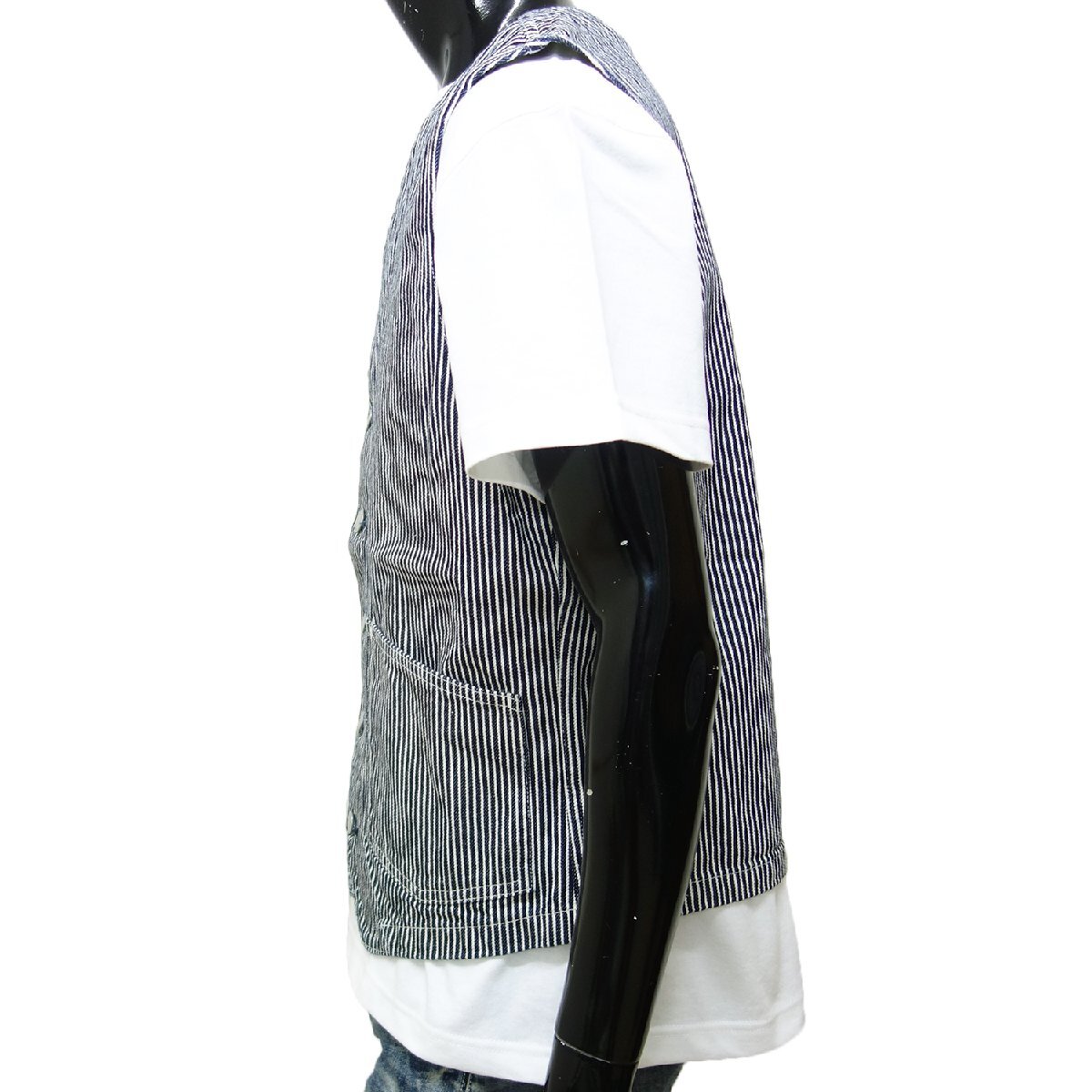 児島ジーンズのワークベストです。13オンスの厚すぎず薄すぎないベーシックな生地で用いられています。またどんなスタイルにもマッチするシンプルなこなしが◎です!Tシャツやカジュアルシャツとの合わせはもちろん鉄板ですが、アウターのインナーとしても重宝します♪メイドインジャパンの丁寧でしっかりとした仕上がりもセールスポイントの1つです♪着ているだけで個性を主張できて、気分も上がるオススメのトップスです♪