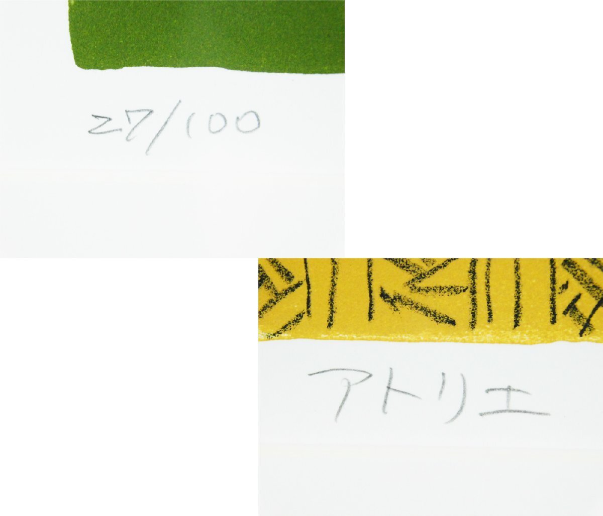 作品マージン下部に作者のサイン、画題、エディションが見られます