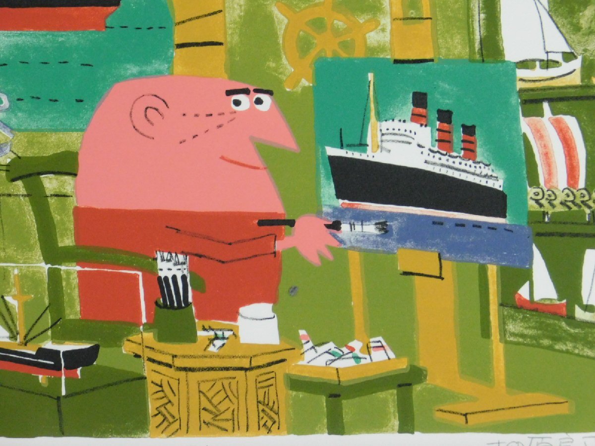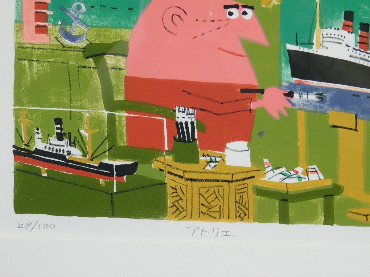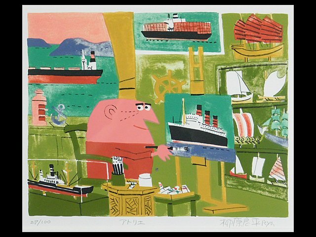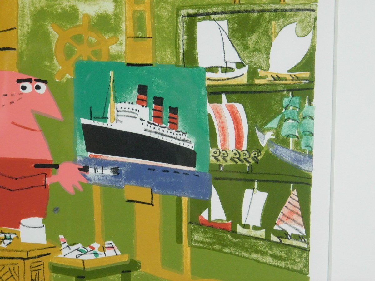 柳原良平 アトリエ リトグラフ 版画 額装 専用紙箱「アンクルトリス」の生みの親 イラストレーター 漫画家 OK7098