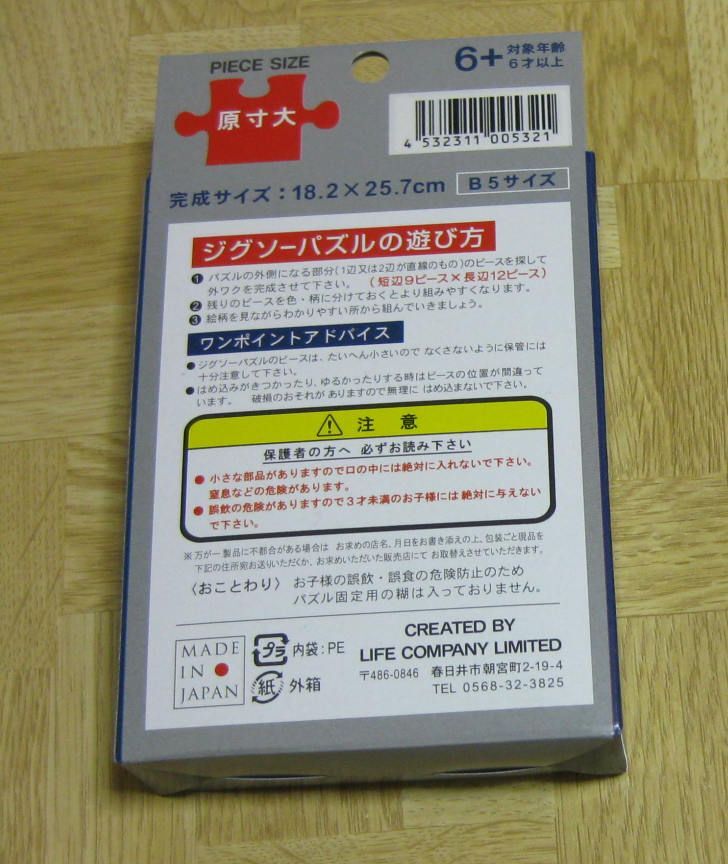 新幹線 N700系のぞみ 108ピースジグソーパズル 完成B5サイズ ※糊なし ピース数:108 完成サイズ:18.2㎝×25.7cm(B5サイズ) 糊は入っておりません。 外箱を開封して発送してもよろしければ、ゆうパケットやクリックポストでも発送可能です。 ※外箱は同封して発送します。 <匿名発送について> ゆうパケットをご選択の場合は、外箱を開封して発送します。 宅急便をご選択の場合は、外箱から開封せずに発送します。 |