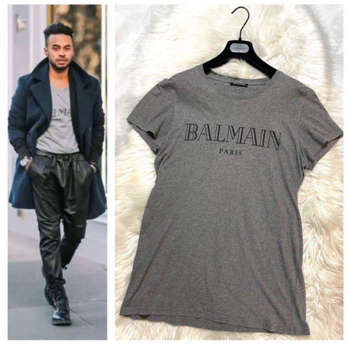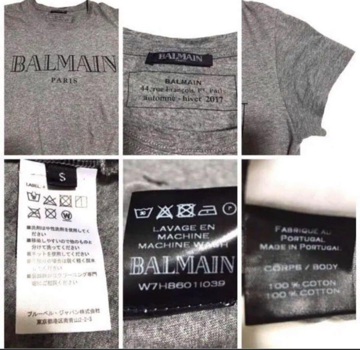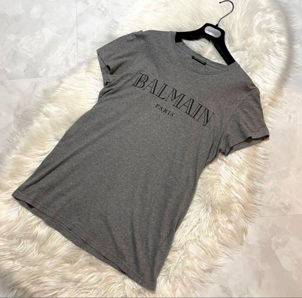 ○本物 バルマンオム ロゴプリント Tシャツ カットソー S 灰 黒 BALMAIN HOMME