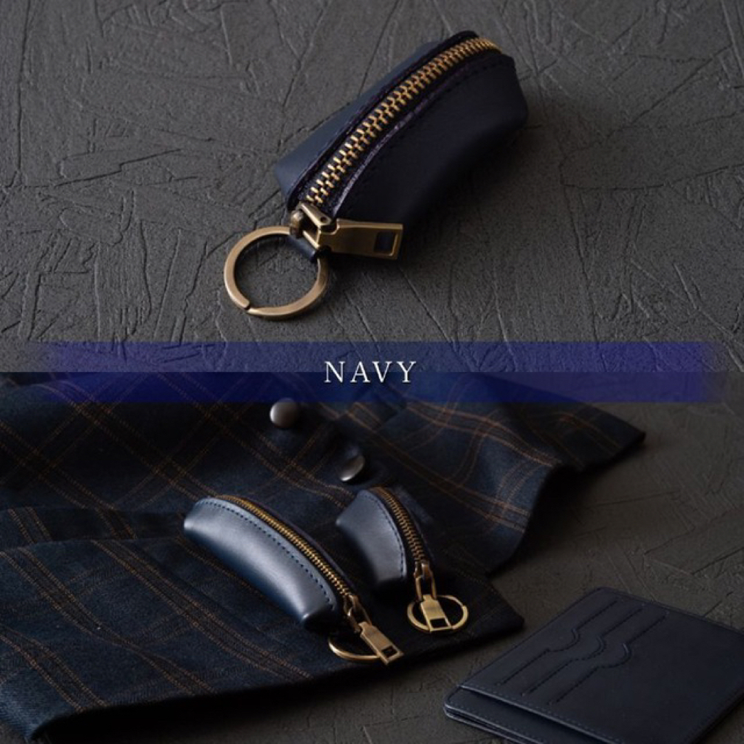 訳あり 本革 コインケース メンズ キーリング付き 小銭入れ 革製 小型 財布 送料無料 ネイビー