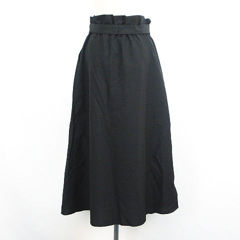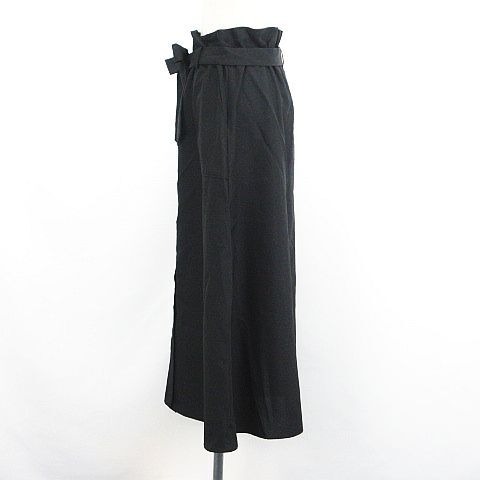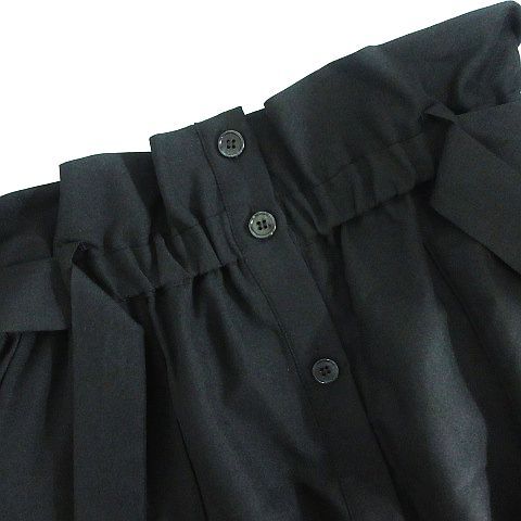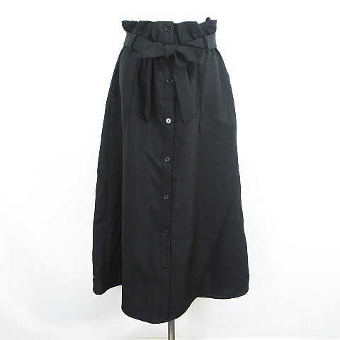 ビームスハート スカート ボトムス ロング丈 マキシ丈 フレア フロントボタン ウエストフリル イージー ブラック ※EKM レディース