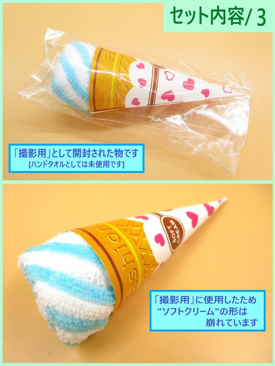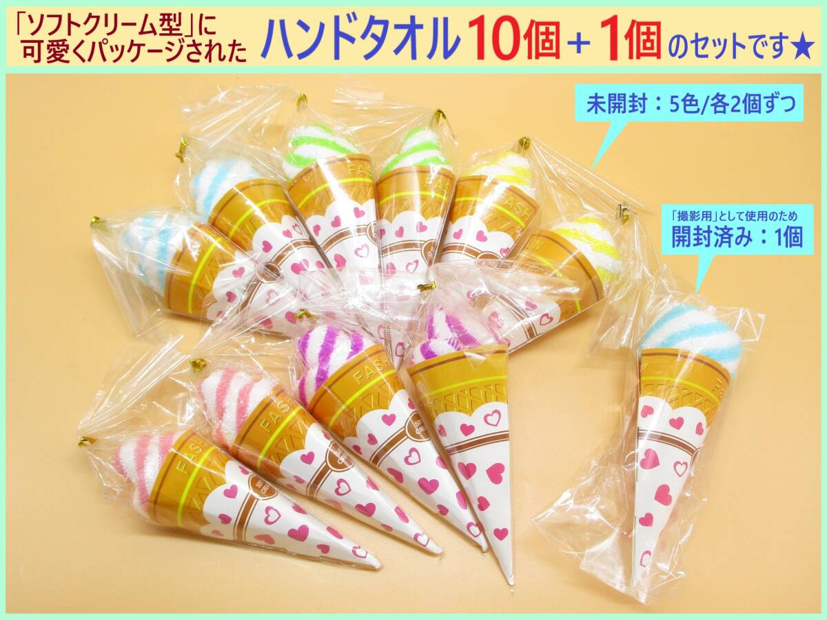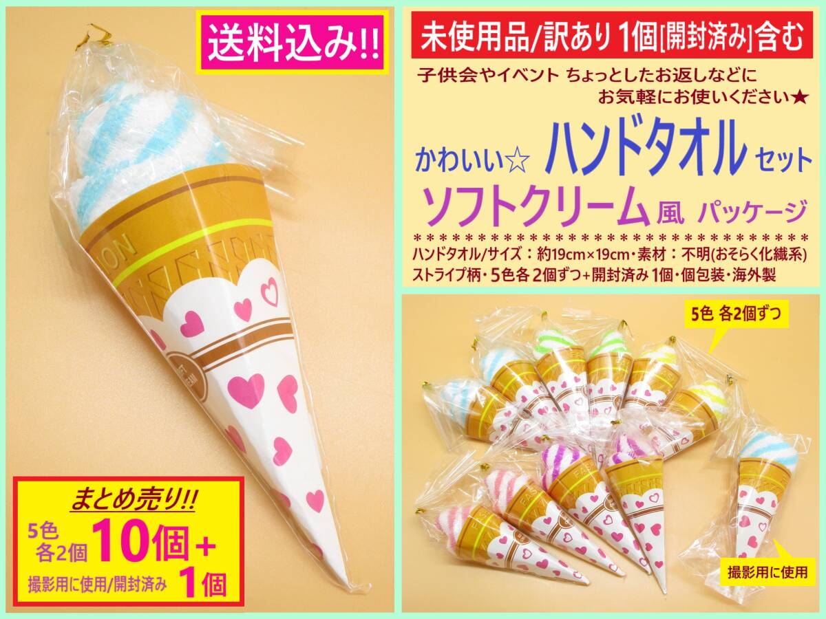 | 「ソフトクリーム」型に 可愛くパッケージされた ミニサイズの ハンドタオル です。 未開封・未使用品 5色 各2個ずつ/10個 と 商品ページ作成のため 撮影用として開封された物 1個 計 11個のセット商品です。 「撮影用」として使用された物も 「タオル」としては未使用品ではありますが 形状を戻せない・開封済みであることから 「訳ありを含む」として出品いたします。 気になさる方はご遠慮ください。 以下の商品説明をよくご覧になってから、 ご検討をお願い致します。 神経質な方、完品をご希望の方は、 御入札をご遠慮ください。 【商品内容】 可愛くパッケージされた ハンドタオル 5色 各2個ずつ 計10個 +開封された物 1個 [基本的な仕様] ・パッケージサイズ:約 17×6×5(cm) ・ハンドタオルサイズ:約 19×19(cm) *商品ごとに 多少の差異がある場合があります ・海外製/メーカー等の詳細は不明 ・素材は不明ですが、 ポリエステル等の化繊系と思われます ・倉庫での長期保存品です *状態などは画像にてご確認ください *実際の商品の色味とは異なる場合があります 【状態等】 ・基本的には未開封/未使用品です。 ・海外製につき、作りや縫製に 粗さがある場合があります。 また、製造過程にての他色繊維の付着・ 汚れ・埃の付着等がある場合があります。 美品・完品をご希望の方はご遠慮ください。 ・未開封品のため、商品の状態確認は 外から見える範囲でのみ行っております。 「訳ありを含む」として出品のお品です。 ご承知をいただける方のみ、 ノークレーム・ノーリターンにて ご検討下さい。 | ||