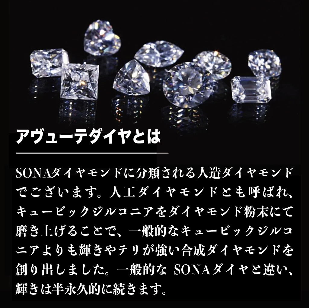 旧作よりも輝きを格段に増したSONAダイヤが、角度を変えるたびダイヤモンドと同様キラキラと眩い虹色光彩を放ちます。