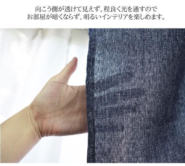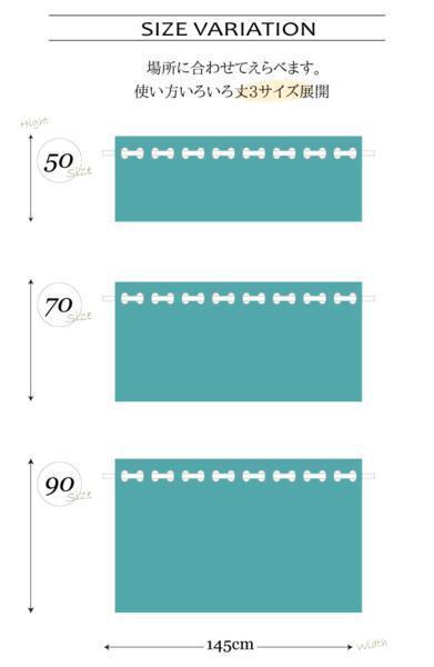 ・突っ張り棒(別売り)を通して手軽に設置できます。小窓にはもちろん、収納棚の目隠しや洗面所・脱衣所にも。 ・ナチュラルな生地はお気に入りのインテリアにもすっと馴染み使いやすい。 ・麻のような質感の糸で織られたリネン調生地。 ・程良く光を通すのでお部屋が暗くならず、明るいインテリアを楽しめます。小窓、棚などにも使用でき日焼け防止としてもオススメです。 ・製品の特徴上、実寸サイズは商品一つ一つによって若干の誤差がございます。予めご了承の上、ご注文ください。 | |