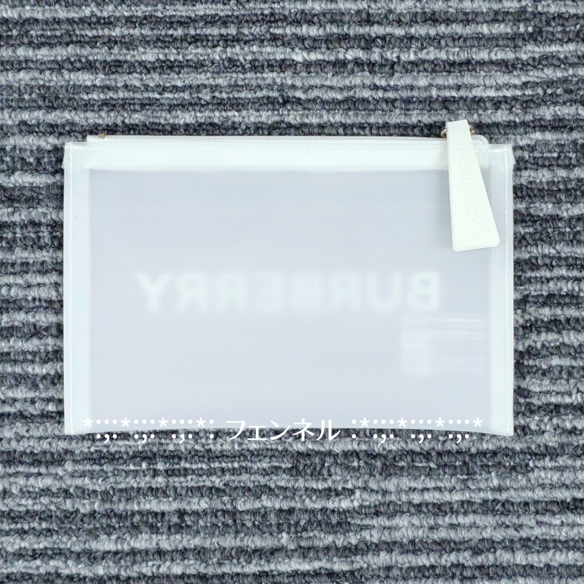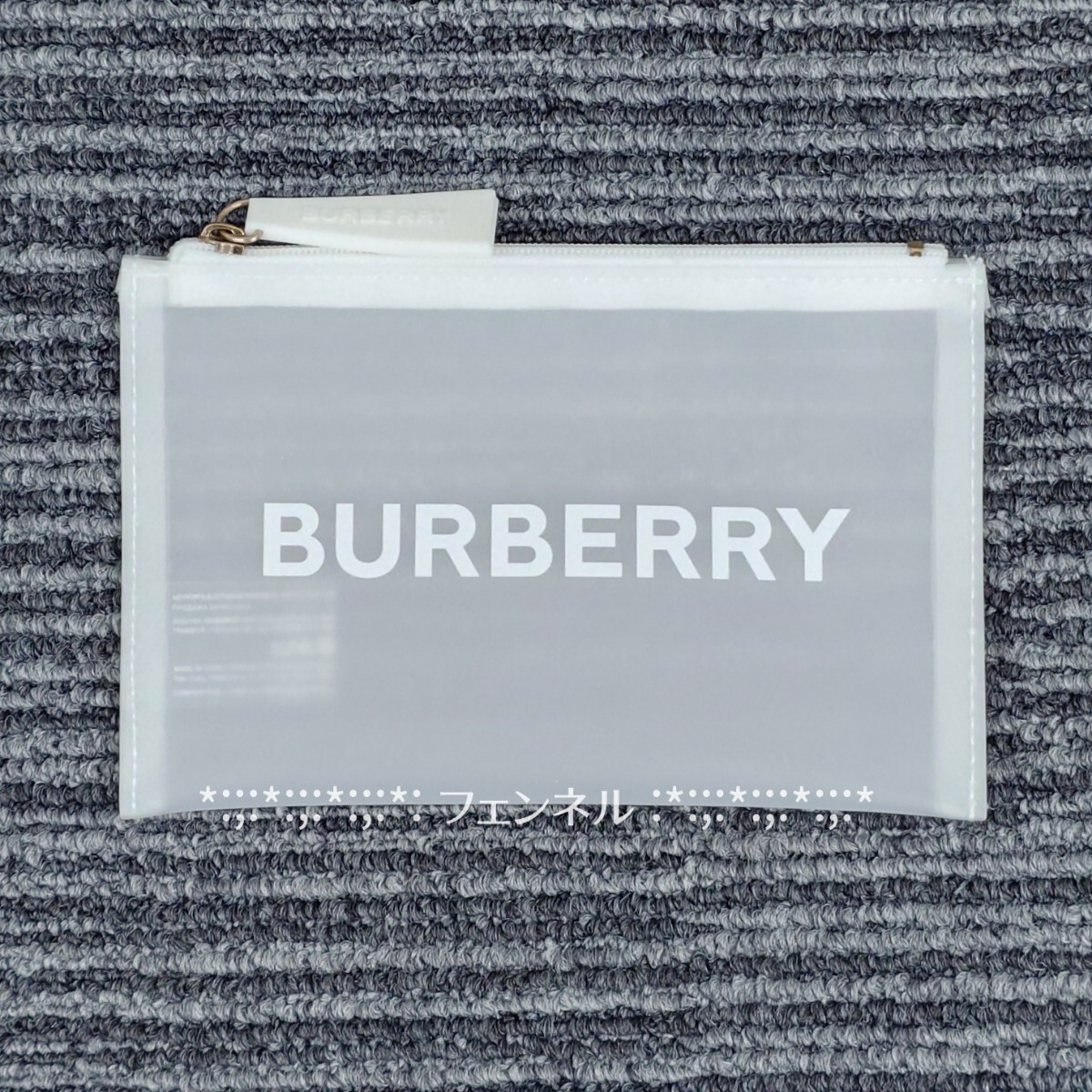 新品未使用 バーバリー 正規ノベルティ タグ付き 本物 ロゴ スケルトンポーチ 半透明ホワイト ビニール製 防水 フラットポーチ