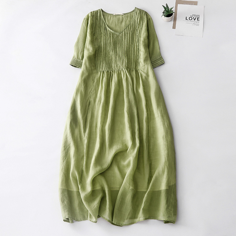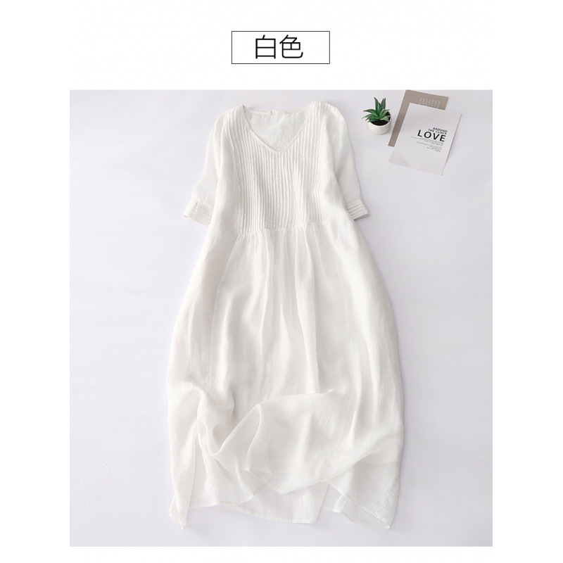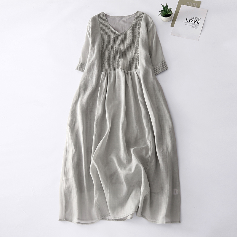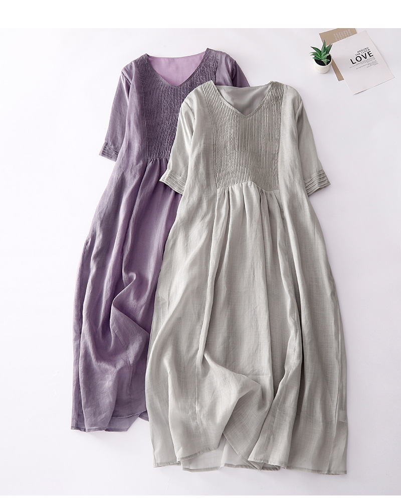 新入荷カジュアル ロングワンピース 大きいサイズ コットン リネン おしゃれ 半袖 マキシ丈ワンピース 紫 /2XLサイズ