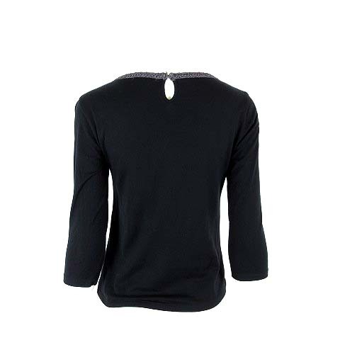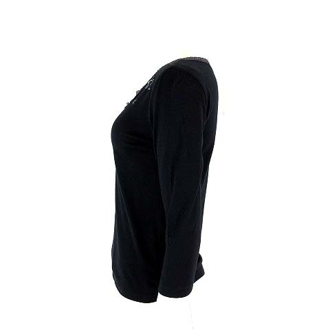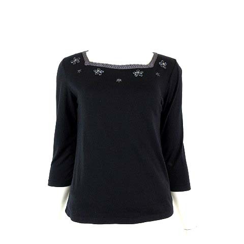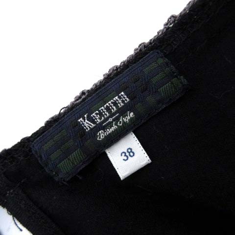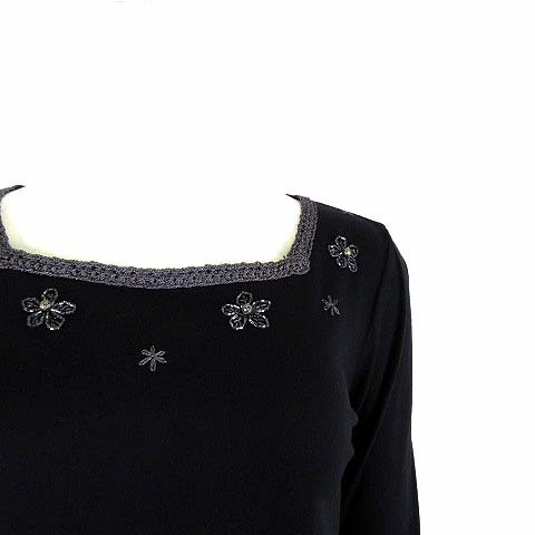 キース KEITH カットソー レース 花モチーフ ビーズ装飾 スクエアネック コットン 7分袖 M 38 黒 ブラック グレー レディース