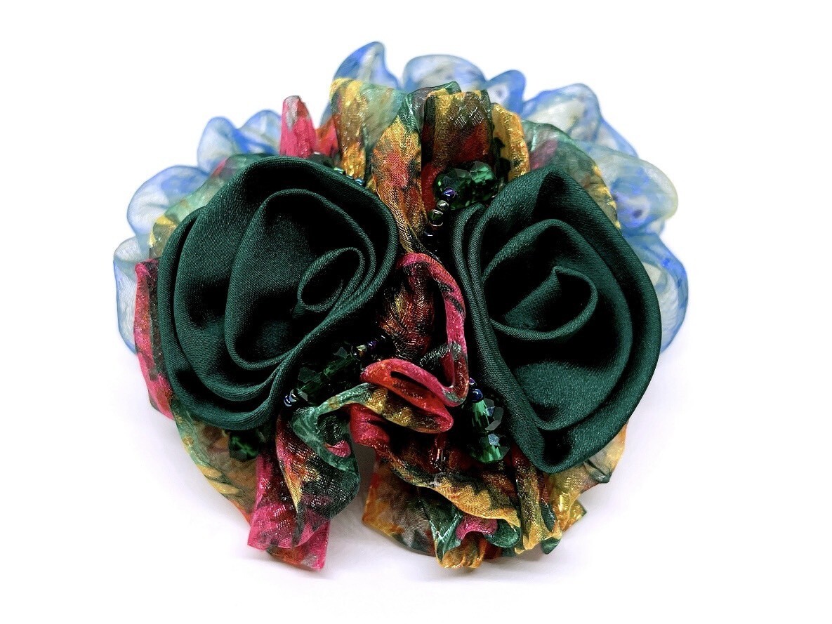 送料140円!同梱OK!取置2週間。(*^^☆彡*ハンドメイドシュシュ*ヘアゴム*お花*フラワー*ビーズ*デザイン*A134*即決!