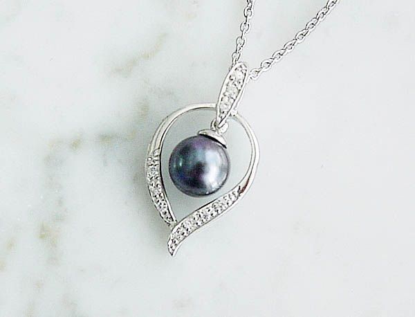 ◆宝石素材 : 養殖あこや本真珠6.5-7mm(グレー染) ◆地金素材:SILVER925プラチナ仕上げ(ロジウムコーティング) ◆サイズ:縦横=約23×13mm チェーン:材質=SILVER925にロジウム仕上げ チェーンの長さは約40cm |