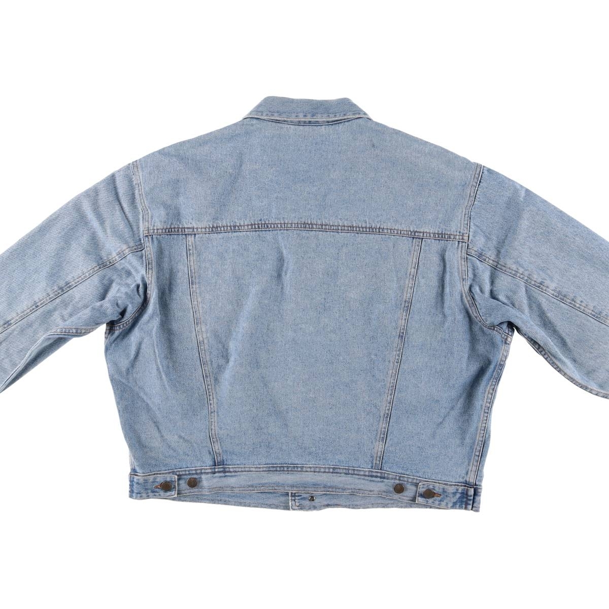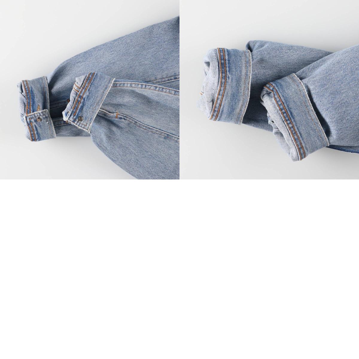 表記サイズ: XL 着丈: 59.5cm 身幅: 67.5cm 肩幅: 57cm 袖丈: 63.5cm ![]() | ![]() ランク:C USEDデニムですので使用感、擦れ、色落ちなどございますが、まだまだご愛用していただけます。 古着という事をご理解の上ご注文よろしくお願いします。 【状態追記】 ●全体的に色褪せあり ●前、襟・腹部・裾・右腕・左右袖先に汚れ ●前、胸・裾に擦れ ●後、襟・背中・裾・左右腕・左右袖先に汚れ ●後、左右袖先に擦れ ●内側、襟・胸・腹部・裾・右腕・左右袖先に汚れ ●内側、胸・裾・左右袖先に擦れ |