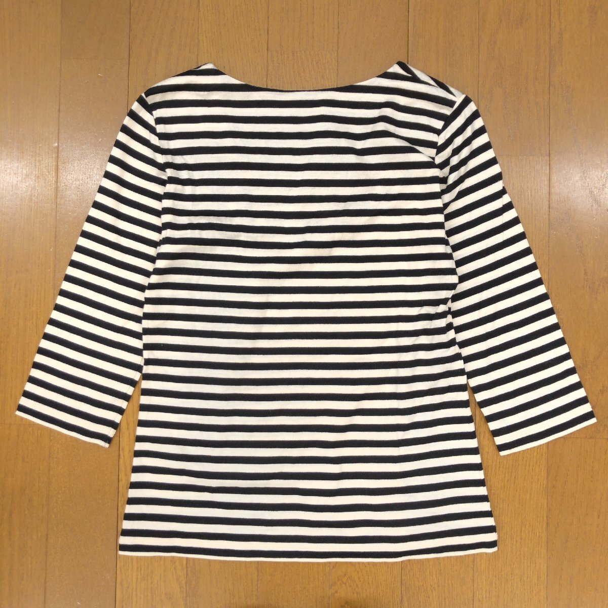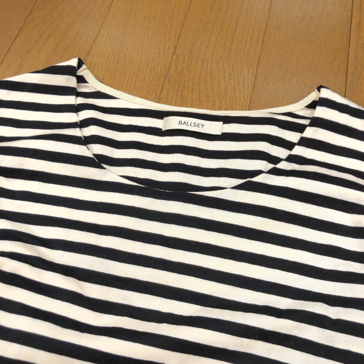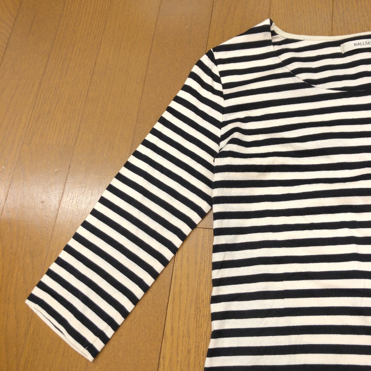 美品 Ballsey ボールジィ コットン100% オープンネック ボーダー カットソー 38(M) 日本製 ロンT Tシャツ 七分袖 女性用 トゥモローランド