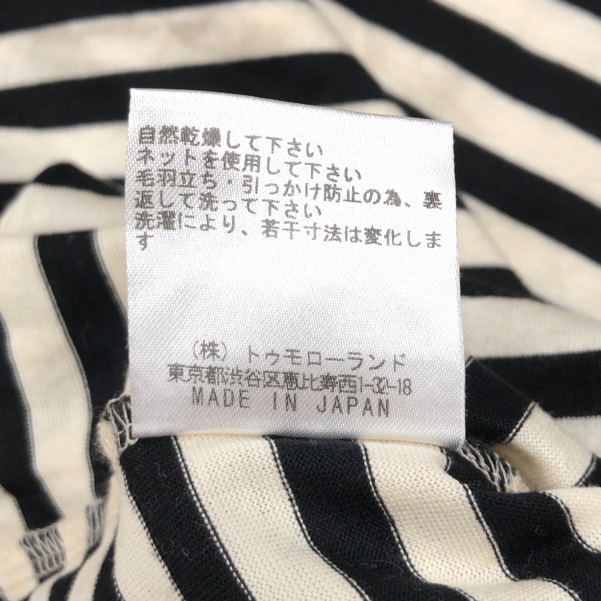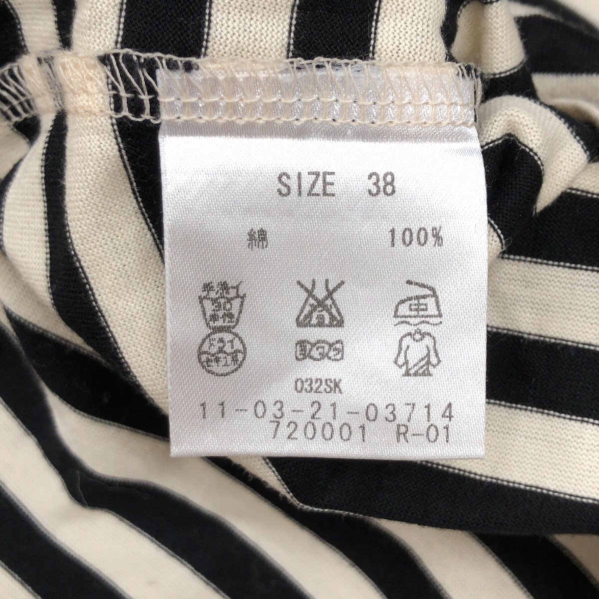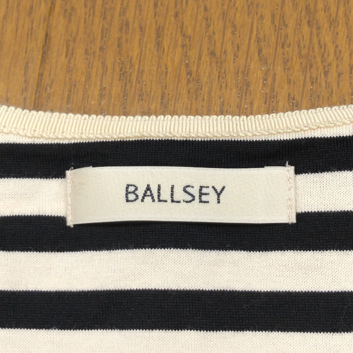 美品 Ballsey ボールジィ コットン100% オープンネック ボーダー カットソー 38(M) 日本製 ロンT Tシャツ 七分袖 女性用 トゥモローランド