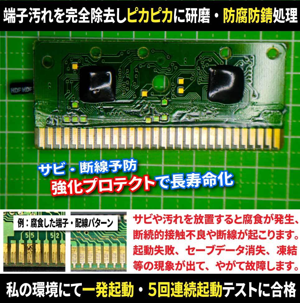 動作品を買っても一発起動しないことが多いレトロゲームを電子機器整備士が丁寧にオーバーホールし連続機動性アップ・独自の防腐防錆強化コーティングで更に長寿命化したココでしか買えないお値段以上の超贅沢メンテ商品!本体の端子が正常なら確実に一発起動します。